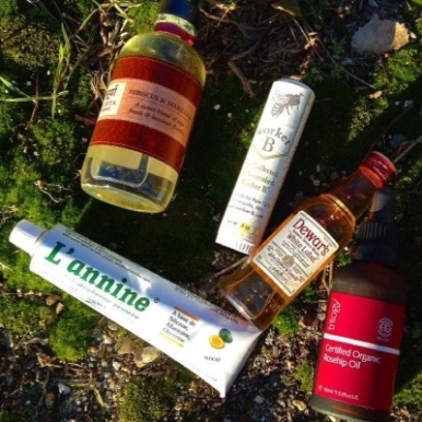 Simple Pleasures offers a selection of luxurious body and skincare products like Lotus Love Beauty body oil, Worker B lip balm, Trilogy rose hip face oil.