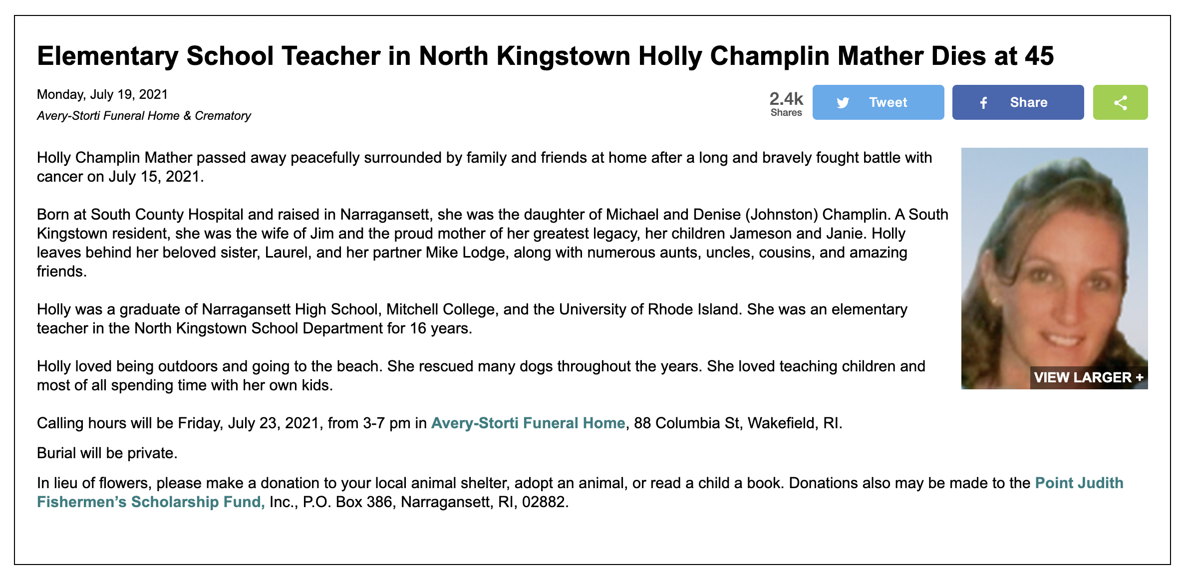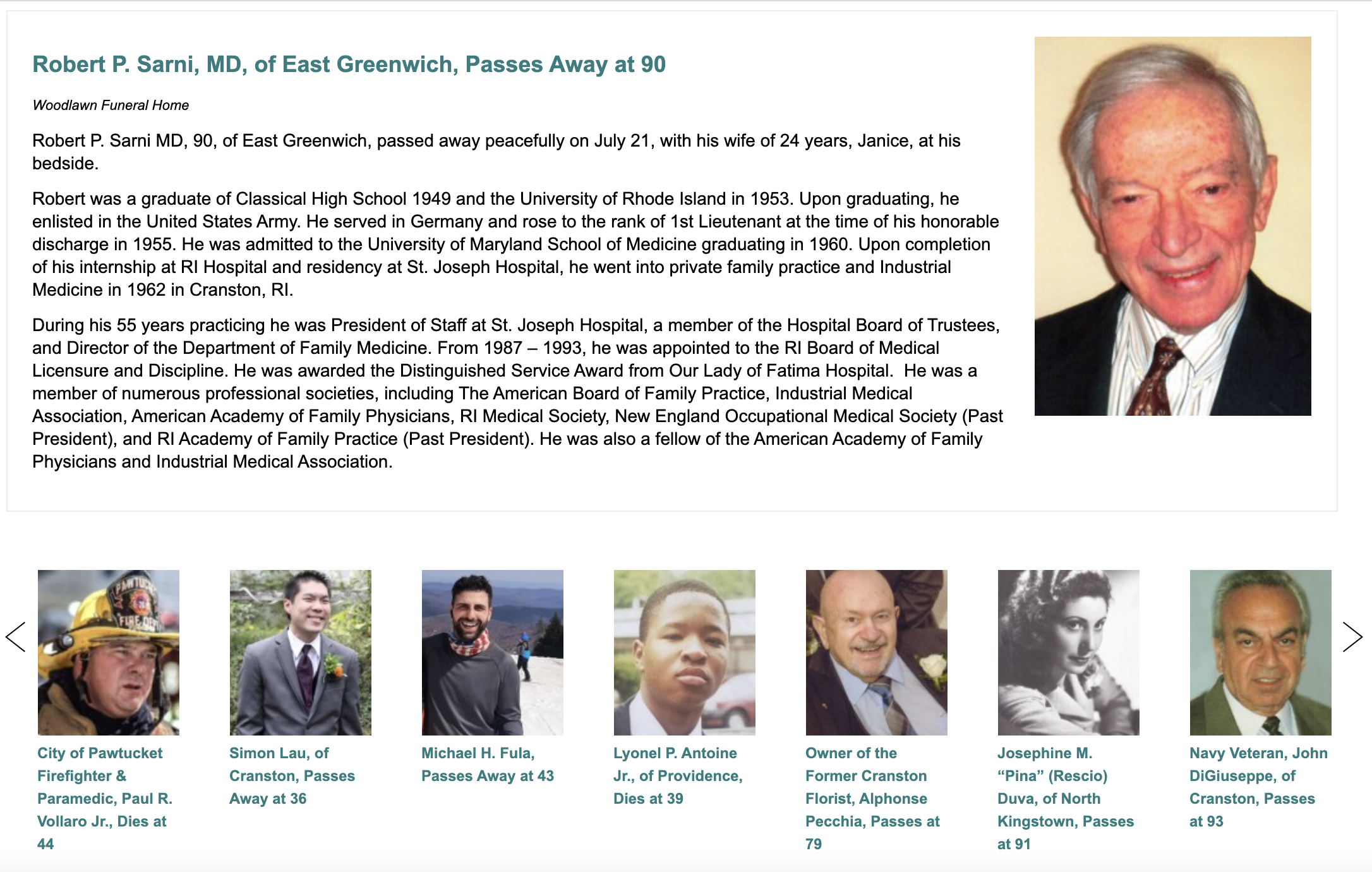 For those families whose funeral homes are not a partner, please feel free to forward the obituary from the funeral home and the photo to GoLocal at news@golocalprov.com and we will publish it at no cost. All obituaries need to have been published by a funeral home in order to ensure that the family has approved the content.