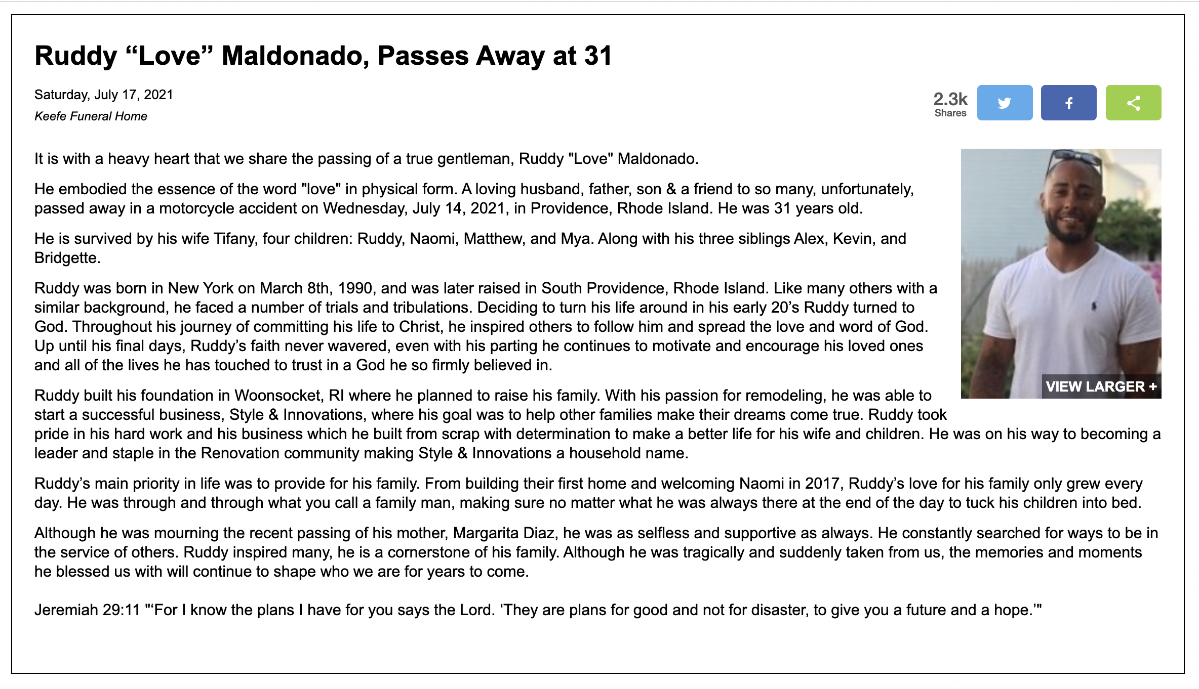 GET THE LATEST BREAKING NEWS HERE -- SIGN UP FOR GOLOCAL FREE DAILY EBLASTThe Providence Journal charges upwards of $1,000 for an obituary and more -- as much as $3,000 for longer obituaries. GoLocal, in partnership with the local funeral homes, is committed to providing no cost regardless of the length of the obituary.