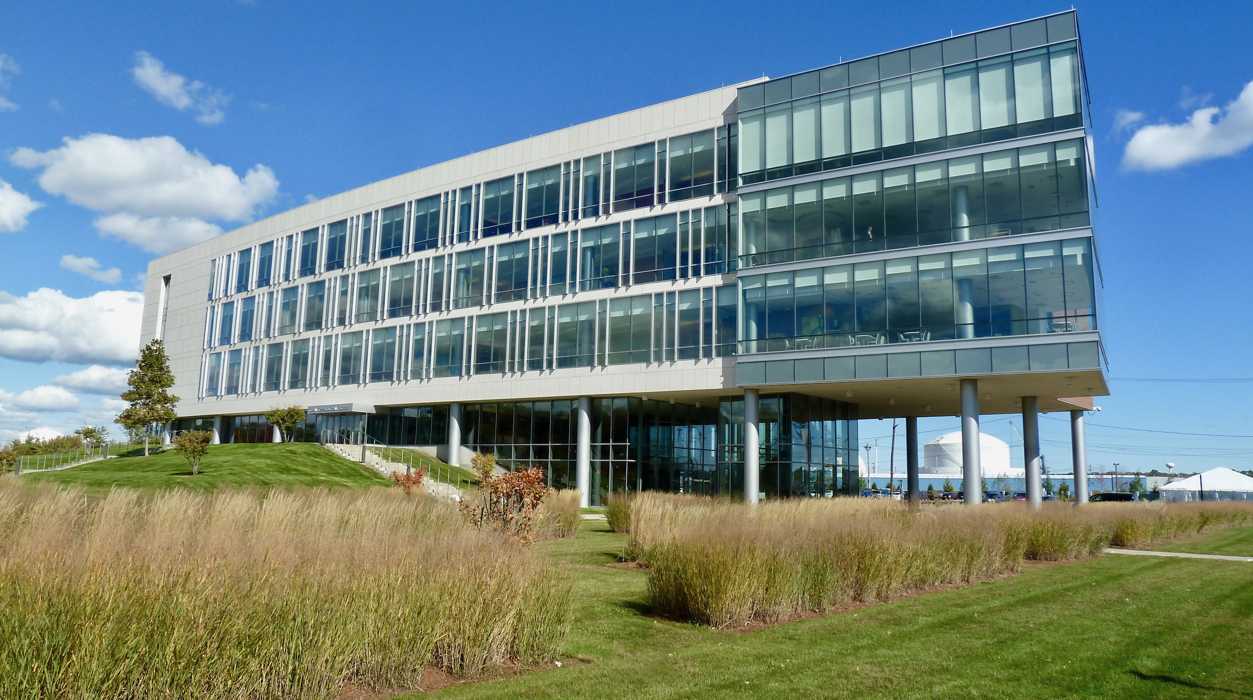 Half of the former brownfield site was restored with drought-tolerant native vegetation, designed by noted New England landscape architect Stephen Stimson.