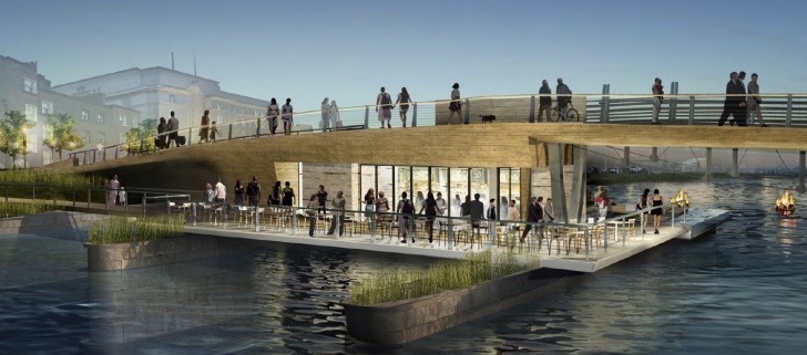 Most of all, it will create common ground for residents and visitors, providing a place to promenade and to view the skyline, College Hill, and the hurricane barrier and the I-195 blue bridge beyond.