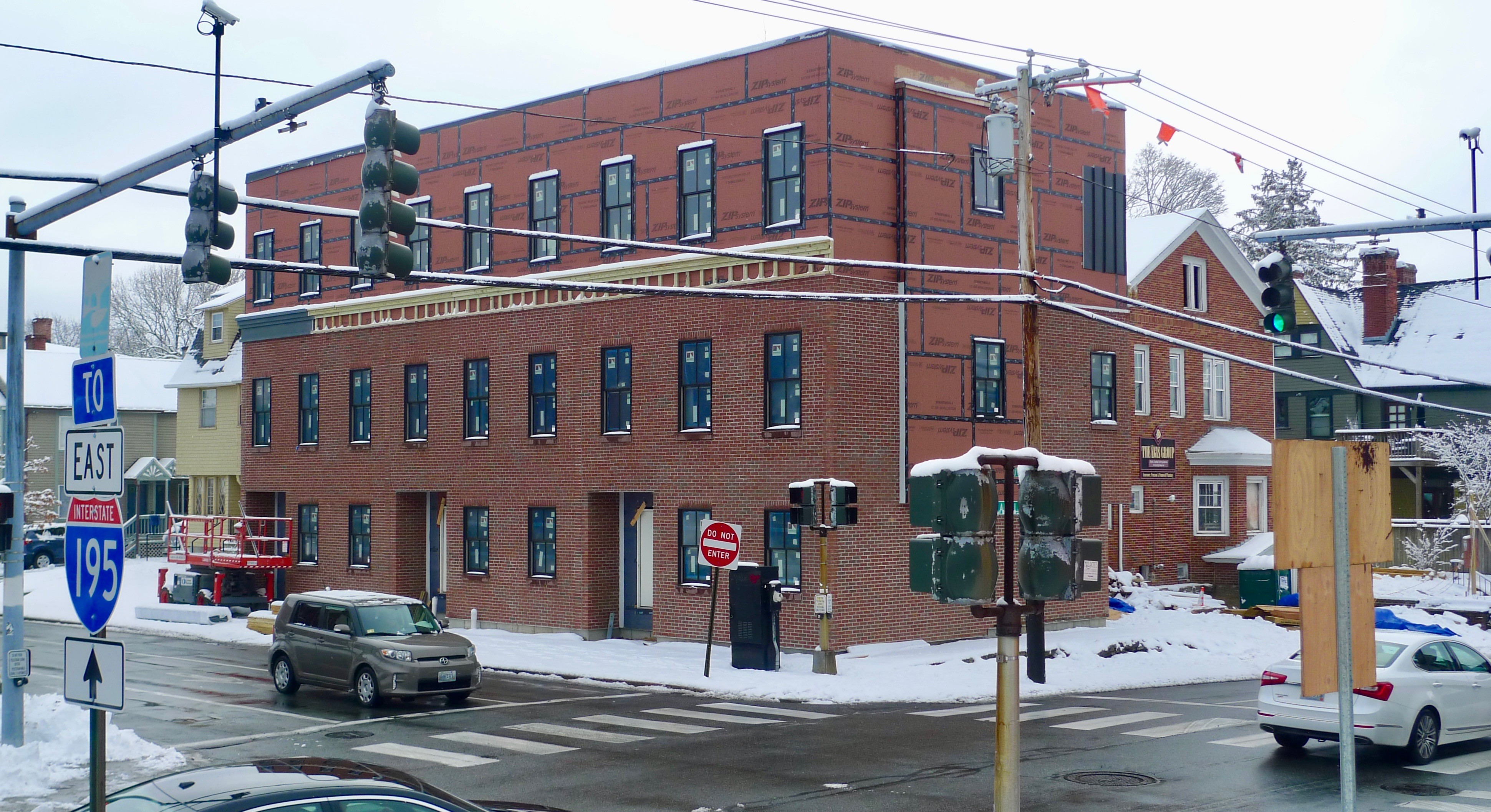 A Zuena-designed apartment or hotel block (like the delayed hotel proposal at Angell and Brook Streets or 81 South Angell) is invariably a stick built structure, a ubiquitous and relatively inexpensive form of commercial construction. That is, it has a wooden balloon frame, upon which have been hung panels of various materials, such as cement board, brick, or stone veneers. These panels are not structural and are employed to mitigate the otherwise undifferentiated masses. ZDS often caps its facades with wannabe mansard roofs.