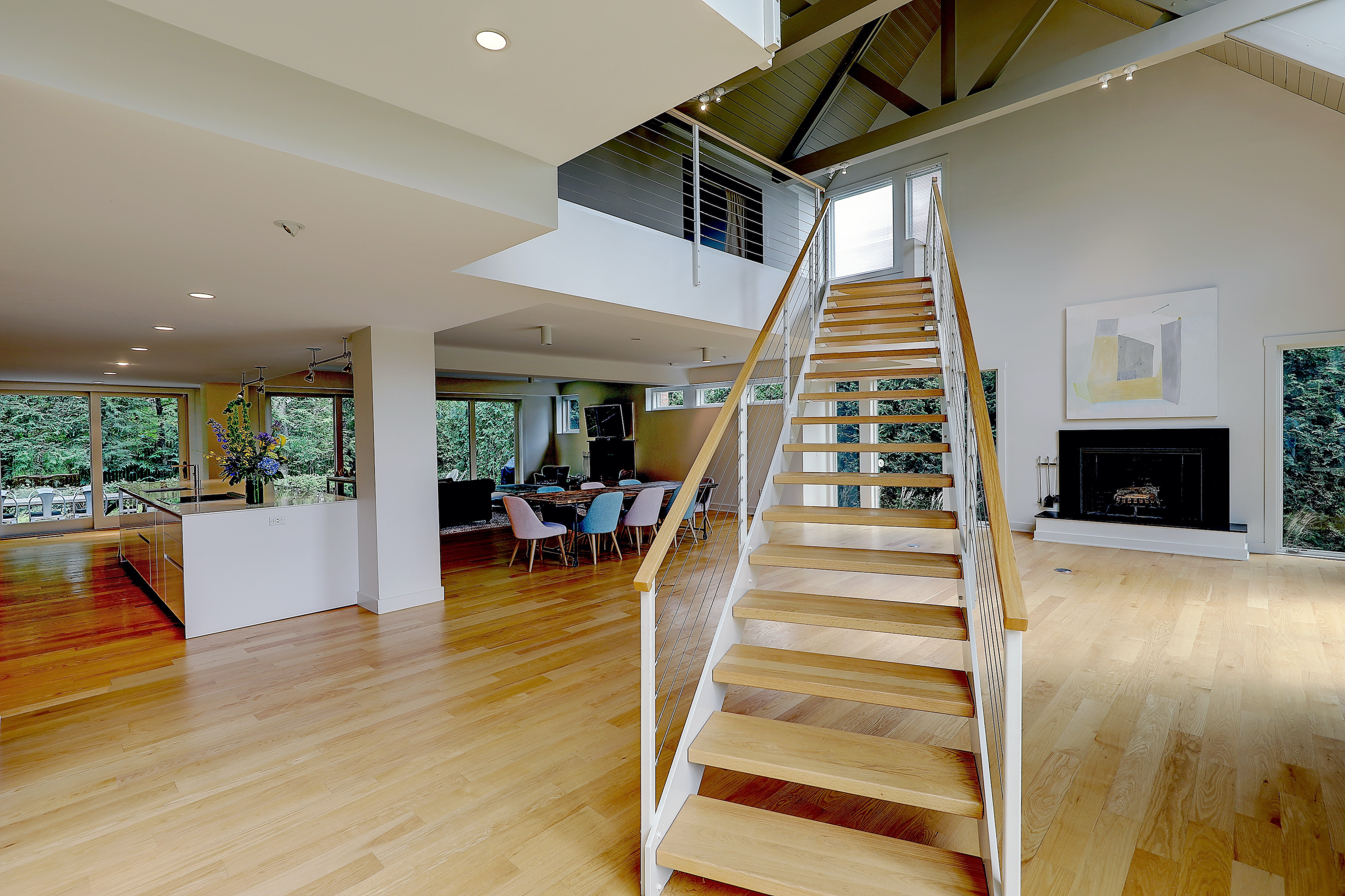 The central staircase is a focal point that leads up to the second level and its luscious master suite and two additional bedrooms.
