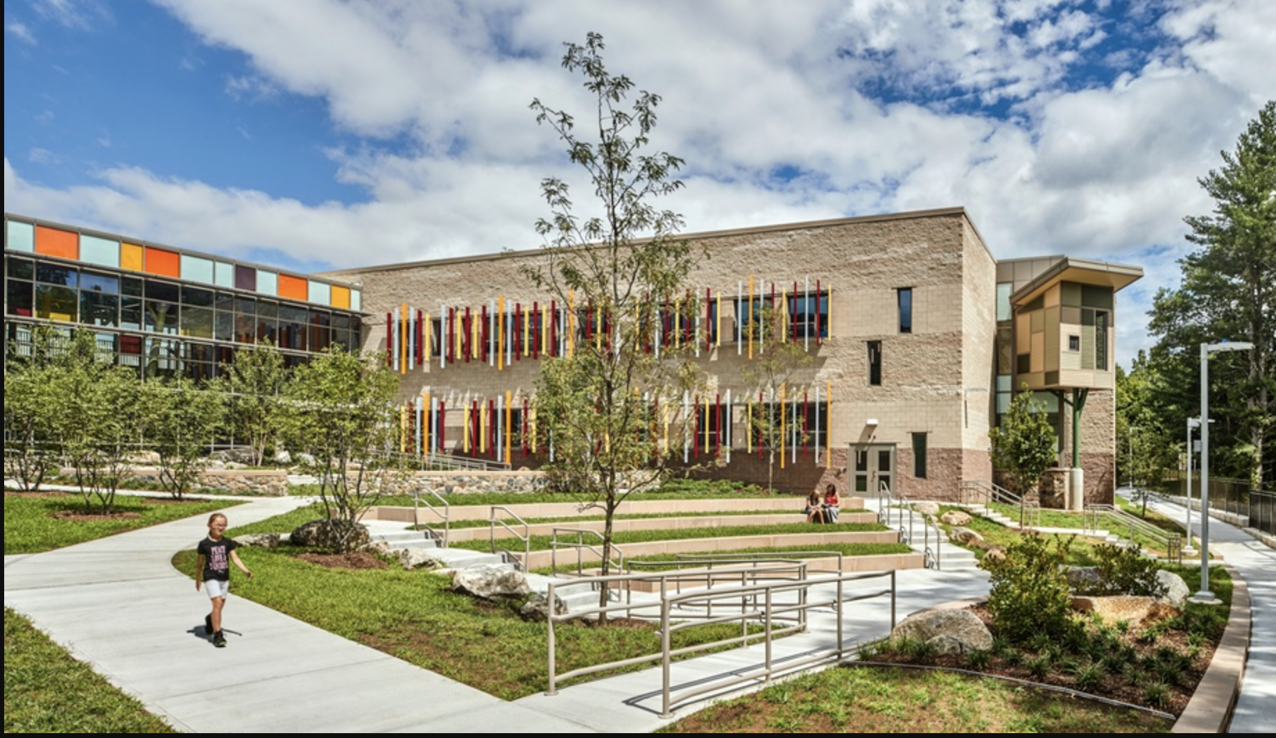 How do you make a school safe, attractive, and welcoming? One of the simplest ways is to create a large open space around schools, and to unobtrusively place barriers, whether plantings, trees, or artistically sited boulders to form a natural buffer.