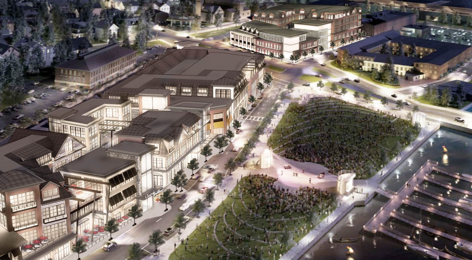 The Carpionato Group is proposing to create a $230-million gateway development called “The Row at College Hill” on parcels two, five and six of the former I-195 land near the Providence River.