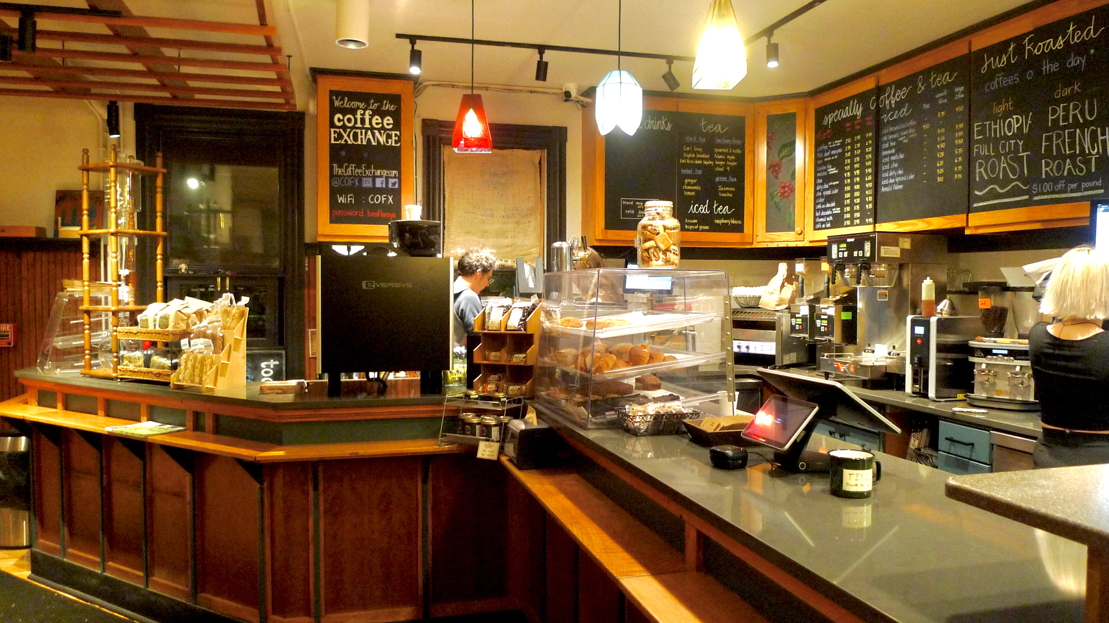 The brilliance of the makeover is that it seems to have thoroughly respected and preserved the ambience of the beloved coffee shop. The difference between the Coffee Exchange work and so much hurry-up renovations, is that Fishbein employed the services of a first-rate architect and a knowledgeable contractor to guarantee a smooth revamp.