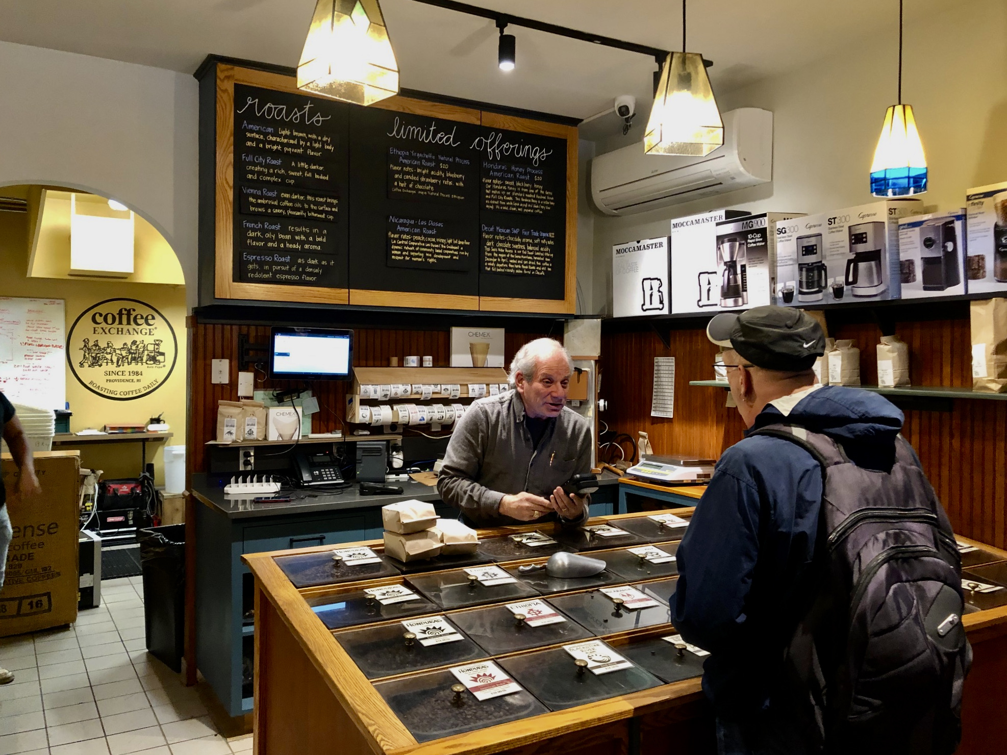 After offering window service for a couple of years during the pandemic, the Coffee Exchange re-opened quietly just before Thanksgiving. To judge from the full house patronage, a lot of coffee mavens are thrilled to have their gathering, reading, studying, catching-up place back. Yet, owner Charlie Fishbein resisted a grand opening (he calls it a “soft opening”), mostly because he wants his business to thrive on service, not hype–he wants the Coffee Exchange to be the “preeminent coffee shop and roaster” in Rhode Island. Having grown comfortably over almost four decades (“it took as much time as it took”), the refreshingly decent Fishbein, is determined to “do the right thing.”