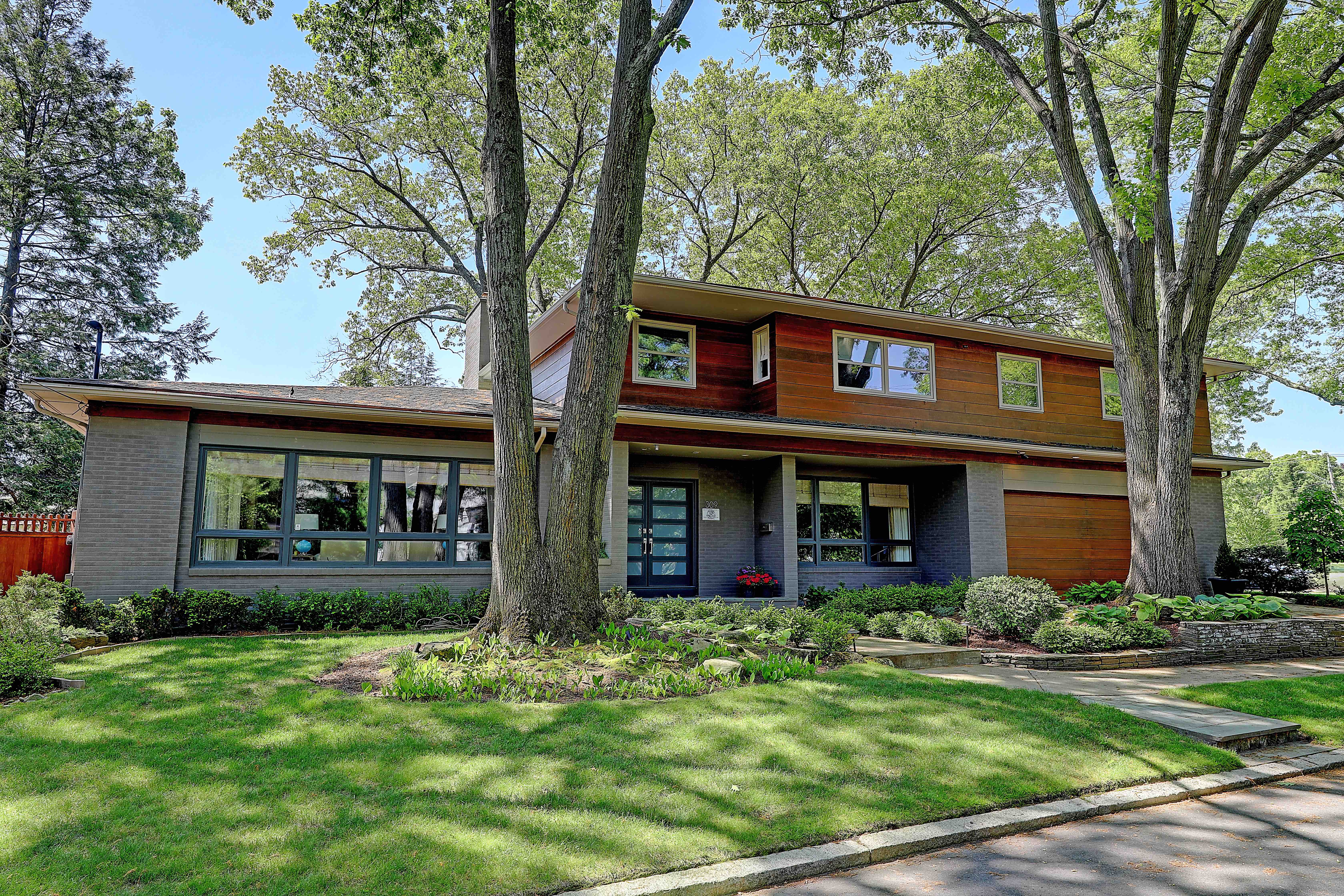 This custom-built, 1959 mid-century modern home sits on a tree-lined block next to prestigious Blackstone Boulevard. Rich mahogany siding and a brand-new roof enhance its classic exterior, while its spacious open concept design offers a double living room that opens to an outdoor terrace perfect for entertaining. The chef's kitchen houses dazzling updates, including a Viking oven and range, a Sub-Zero refrigerator, dual wine coolers, honed stone counters, and custom cabinetry throughout. It also provides walkout access to an additional, enchanting patio set against the meticulously landscaped yard. Luxurious amenities continue in the primary suite, featuring a gas fireplace, dual walk-in closets, marble flooring, and an ensuite bath with a glass-enclosed shower and separate soaking tub. Upstairs, four additional bedrooms provide comfortable retreats for family or guests, with two and a half updated baths and a rear staircase leading to the kitchen. The lower level presents a private suite, perfect for an au pair, with two possible bedrooms, a full bath, fitness center, convenient kitchenette, and a handsome family room complete with a spectacular bar and fireplace. The home’s location in the historic Freeman Plat District allows for unhurried walks to the shopping and cafes of Wayland Square and Thayer Street. A short drive connects residents to the cultural events and fine dining of downtown Providence.