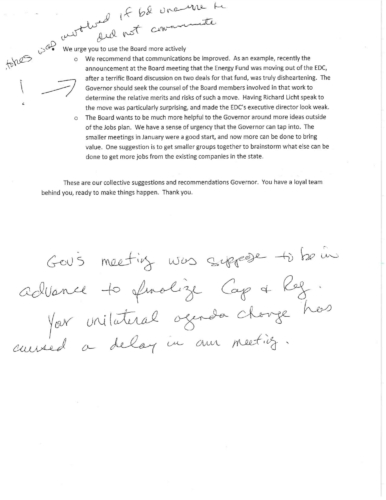 The Foulkes memo was sent to Chafee just two months before the collapse of 38 Studios, but the document that outlines more than 20 issues of concern makes no mention of the funding, management or oversight of the 38 Studios loan guarantee. As GoLocal first reported in May of 2012, the EDC Board never reviewed the 38 Studios loan guarantee.
