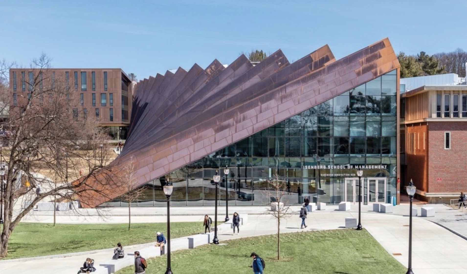 At the University of Massachusetts, Amherst, for example, New England's only public architecture school moved into the first academic building in the United States made of cross-laminated-timber, designed by Leers Weinzapfel, while the business school just opened an innovation hub by Bjarke Ingels Group, one of the world's most daring firms.