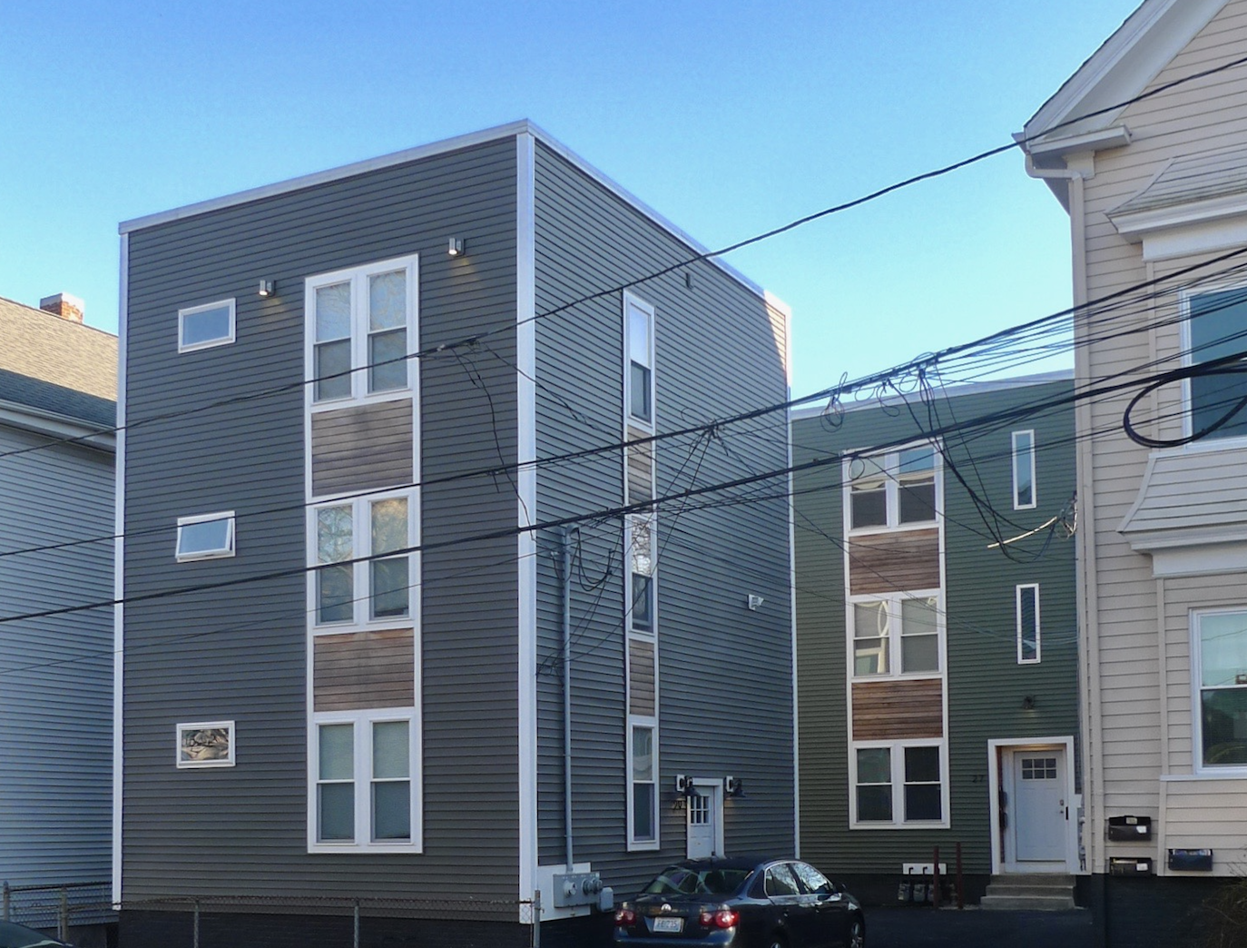 At 292 Wickenden Street, a 19th-century house was demolished for an out-of-scale block of rental units, although the builder did at least employ a gable roof that picks up the rhythm of its neighbors.
