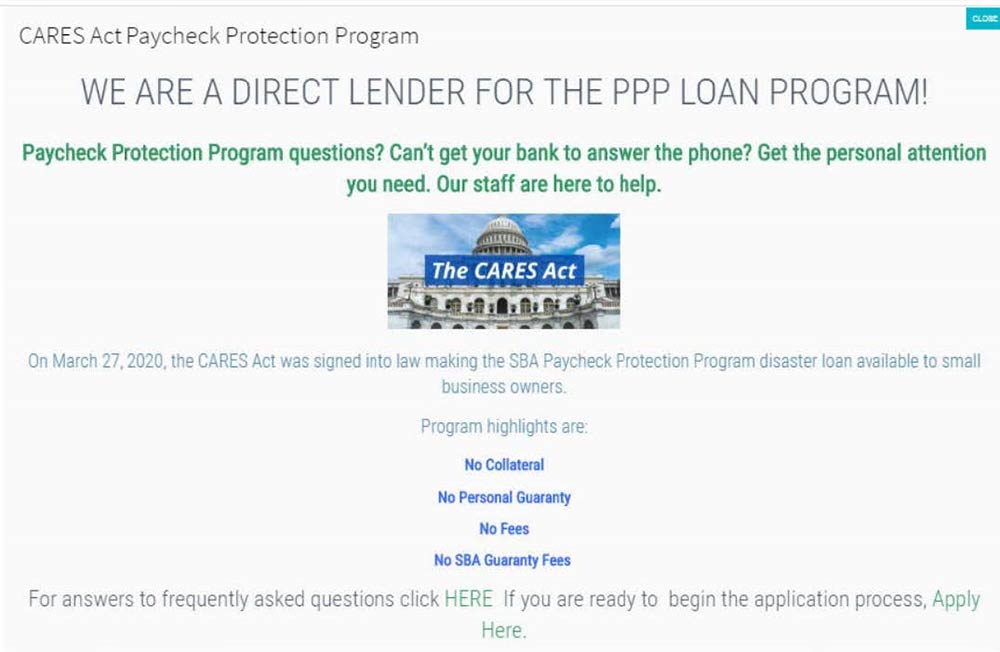 According to the FTC’s complaint, the defendants have called small businesses directly, claiming to be representing the SBA and soliciting loan applications on behalf of the businesses’ banks. They also have made statements on their website like “WE ARE A DIRECT LENDER FOR THE PPP PROGRAM!” and “[w]e are currently offering stimulus relief spending under the Economic Security Act (Cares Act).”