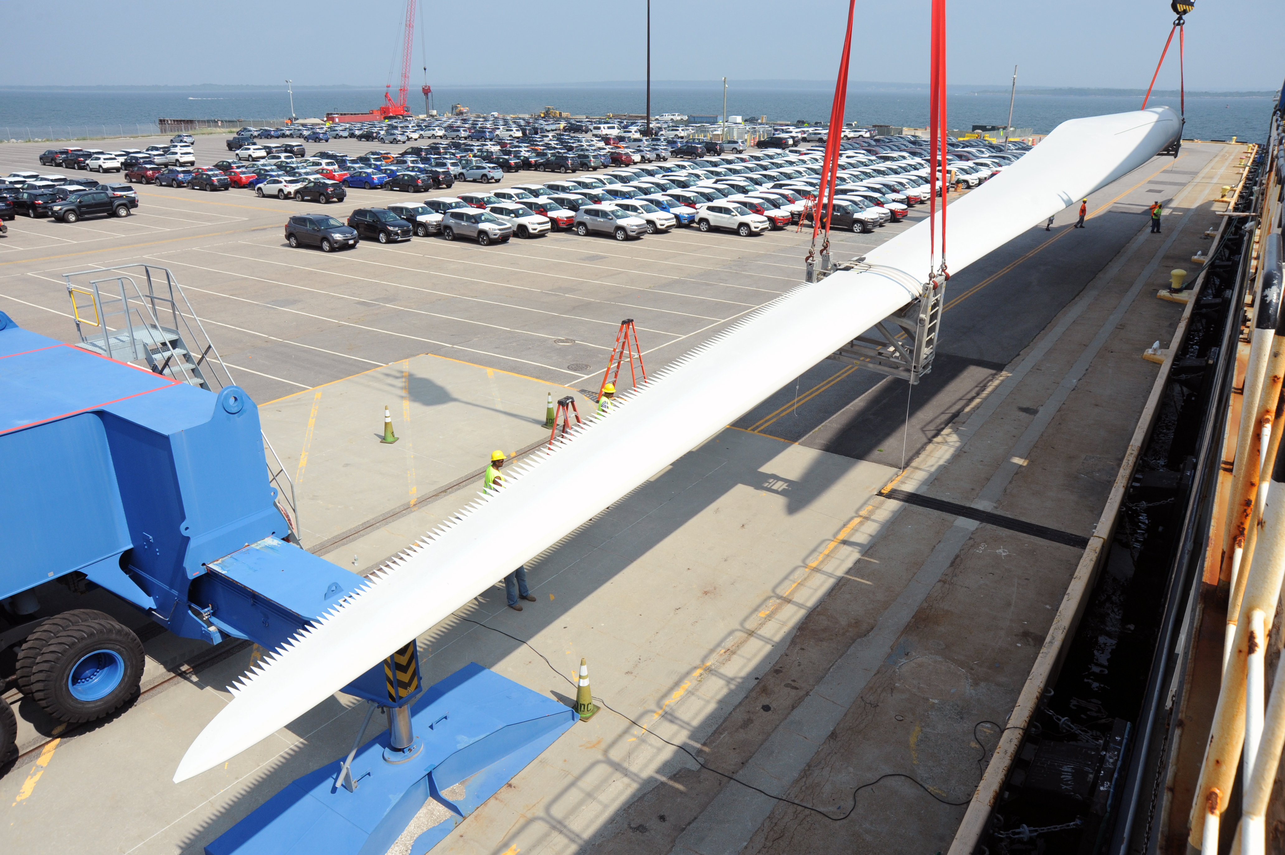 The blades for the Johnston-based wind farm arrived at the Port of Davisville last week.