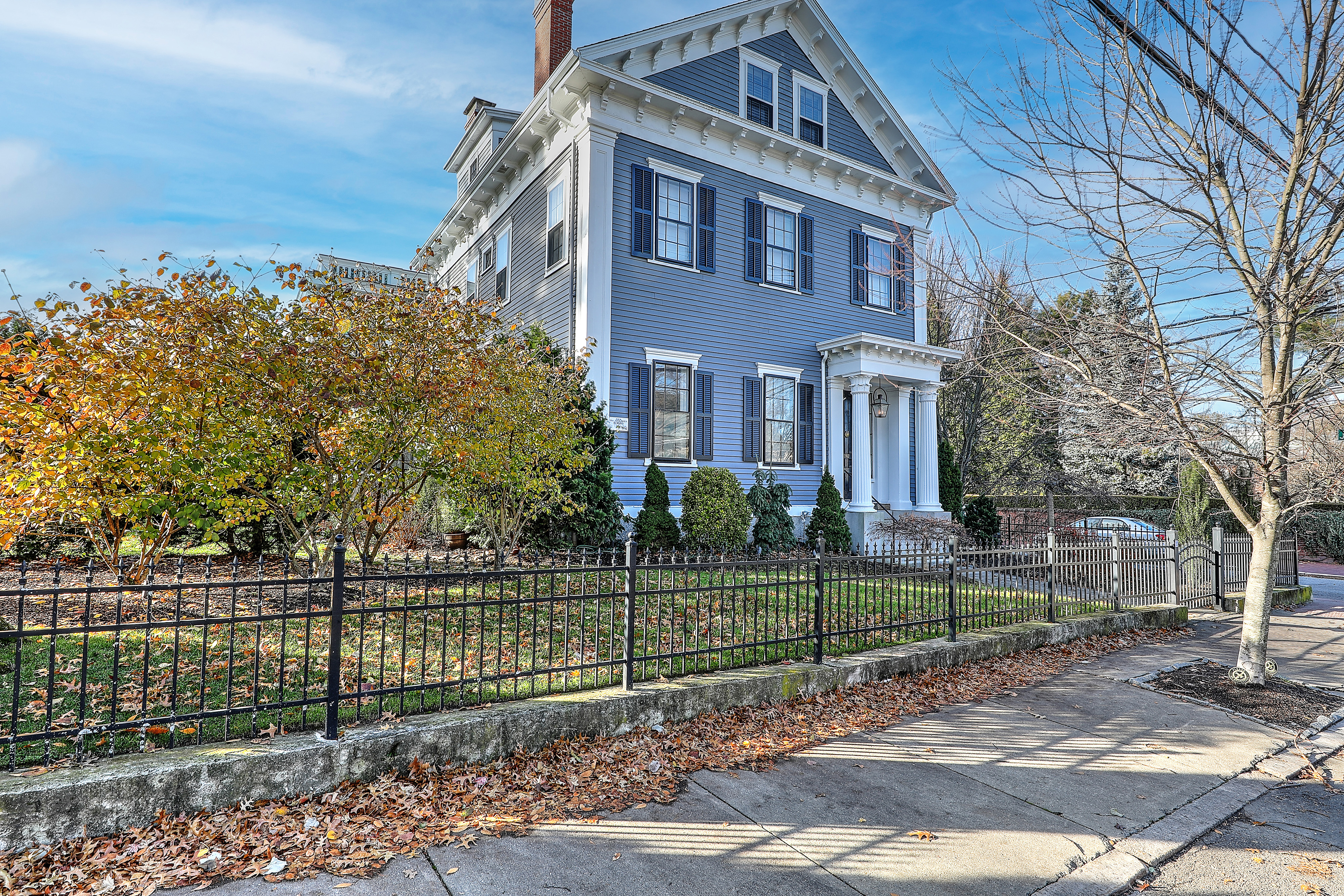 The 5-bedroom, 4.2-bath Eliza Burgess House, circa 1852, is perched atop College Hill and has undergone an extensive renovations including an updated kitchen with new quartz countertops. A bluestone patio with an outdoor fireplace, a butler’s pantry, mudroom, and second-floor primary suite with marble ensuite bath all lend comfort, luxury, and style amid the period character.