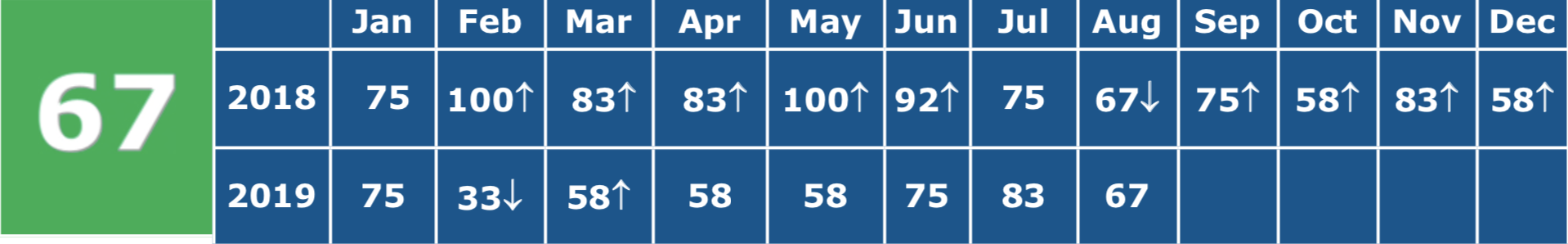 While our negatives gained a bit on our positives this month, causing the Current Conditions Index to fall from its July value of 83 down to 67, actual indicator performances were not as weak as focusing merely on the CCI’s value might suggest. In August, eight of the twelve indicators contained in the CCI improved, with several strong and encouraging performances. The indicators that failed to improve, however, displayed substantial weakness. Not only did the CCI fail to exceed its year-earlier value, after doing so in July for the first time since May of 2018, but only two of the five leading indicators contained in the CCI also improved.