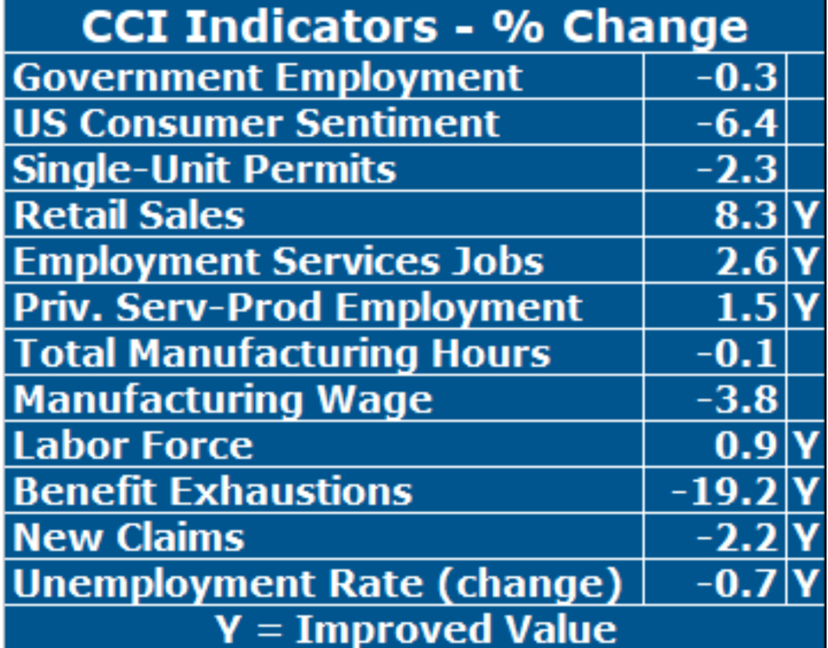 Retail Sales grew strongly again (+8.3%), Government Employment fell from its level a year ago for a third consecutive month (-0.3%), Private Service-Producing Employment growth remained below rates mid-year while still remaining above one percent (+1.5%), and Benefit Exhaustions, the timeliest measure of longer-term unemployment, continued its downtrend in November (-19.2%). The Unemployment Rate remained below 4 percent, driven largely by a Labor Force that fell for the third consecutive time on a monthly basis.