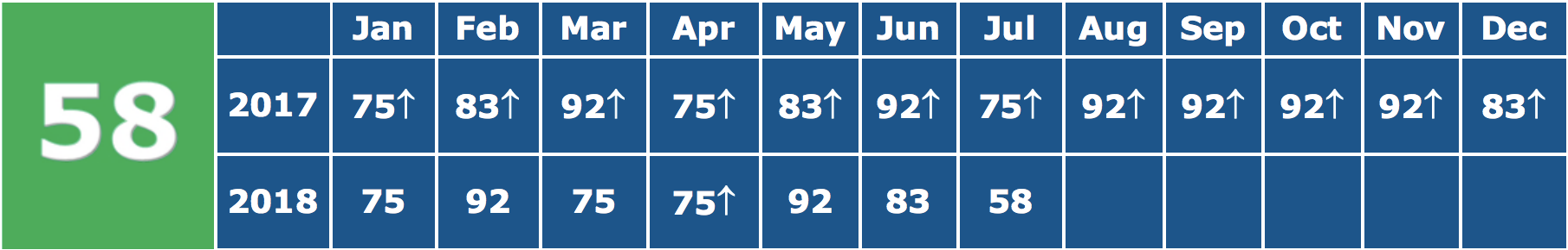 The July Current Conditions Index fell all the way from 83 in June (when ten of twelve indicators improved) to 58, barely above neutral, as only seven indicators showed improvement relative to last July. Not only was the July value the lowest this year, July marked the fifth time this year the CCI has failed to exceed its year-earlier value. What I find perplexing is that the July 2017 CCI wasn’t exactly stellar - at 75 it should not have been that difficult to improve upon.