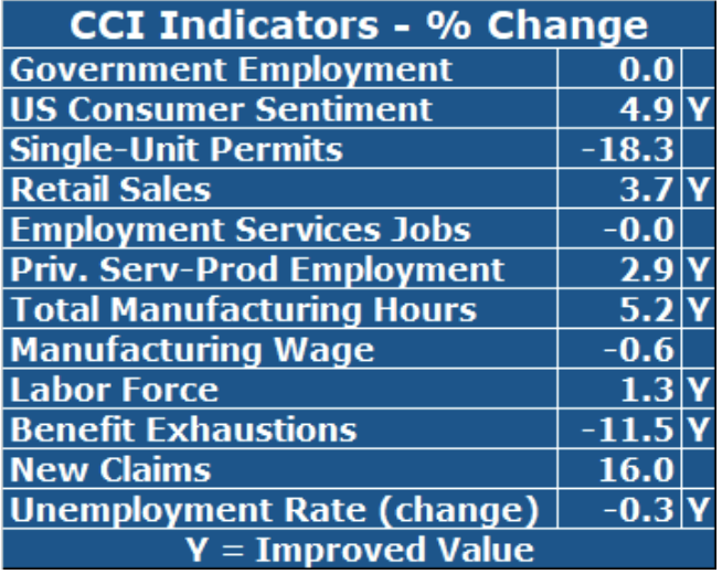 Only two of the five leading indicators contained in the CCI improved this month. New Claims rose in July (+16.0%), postponing its ability to resume a downtrend. Rhode Island’s goods-producing sector’s performance was mixed. Total Manufacturing Hours, a proxy for manufacturing output, an important element of Rhode Island’s strength over the past two years, rose strongly in July (+5.2%) based improvements in both employment and the length of the workweek. Single-Unit Permits, which reflect new home construction, decreased again at a double-digit rate (-18.3%), its sixth decline in the past nine months. Employment Service Jobs, a leading labor market indicator that includes temporary employment, failed to improve in July, perhaps signaled by its recent slowing growth rates. US Consumer Sentiment increased in July (+4.9%), its sixth consecutive improvement. Retail Sales grew again (+3.7%), but growth remained below recent double-digit rates. Government Employment remained unchanged from its level a year ago. Private Service-Producing Employment growth remained above the one percent level, accelerating in July (+2.9%). Finally, Benefit Exhaustions, the most timely measure of longer-term unemployment, fell sharply in July (-11.5%).