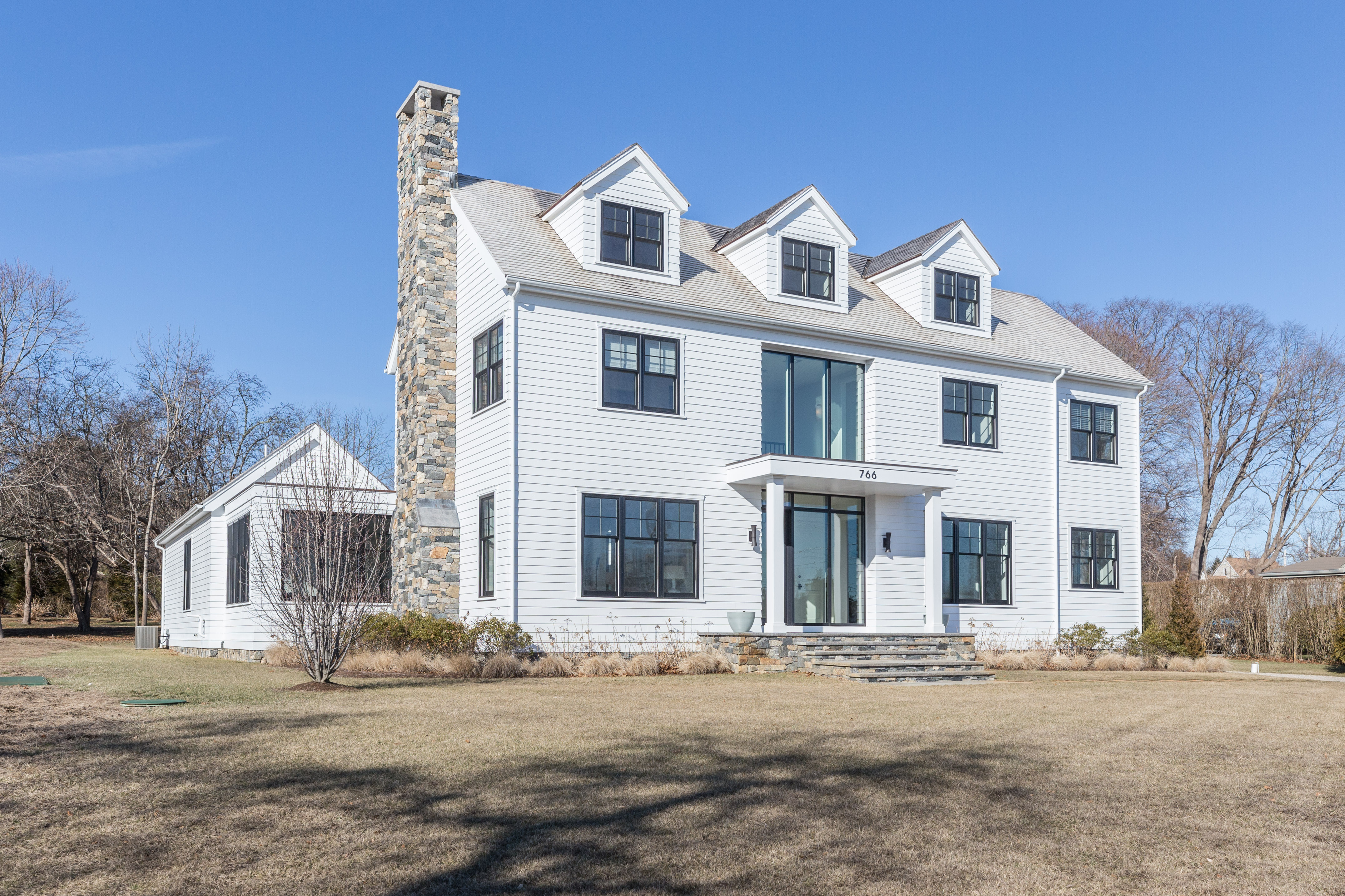 Stunning New Construction water view home on prestigious Indian Avenue. This contemporary estate designed by 2 award-winning New York City architects is beautifully sited on an expansive acre of land. A dramatic entry with floor-to-ceiling steel and glass windows fills the home with natural light and provides views of the Sakonnet River. The home offers two primary bedroom suites, one on the first floor and one on the second, each featuring a sleek marble bathroom with radiant heated floors. Three additional well-appointed bedrooms and three- and one-half baths provide space for hosting guests. Some of the designer details include custom millwork and moldings, white oak floors, a paneled staircase, a 3-story open foyer, coffered ceilings and. The gourmet kitchen includes a large central island, quartz countertops, stainless steel appliances, and an adjacent breakfast room with banquette seating for eight. Centered by an interior courtyard with a bluestone terrace and outdoor shower, the home is ideal for entertaining relaxing after a day at the beach. Plans for a pool house & pool available. Just 15 feet to water access at Pebble Beach and 15 minutes from downtown Newport’s world-class shopping, dining, and entertainment.