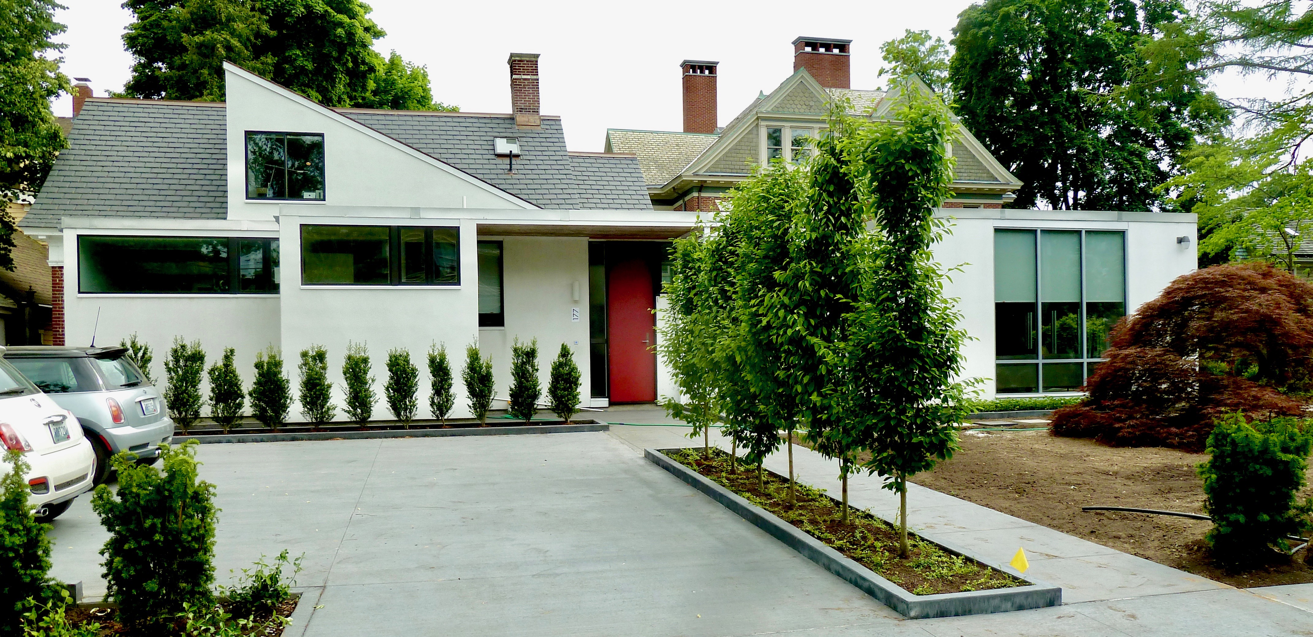 The build quality and aesthetic integrity of Rakatansky's houses are especially noteworthy when compared to most of the new houses being built on the East Side. Rarely selling for less than a million dollars, the typical speculative home is a cheaply made mish-mash of traditional details, such as carriage lamps, porticos, and far too many roof pitches. Unlike these stunted in-town McMansions, Rakatansky domestic designs bespeak a quiet dignity.