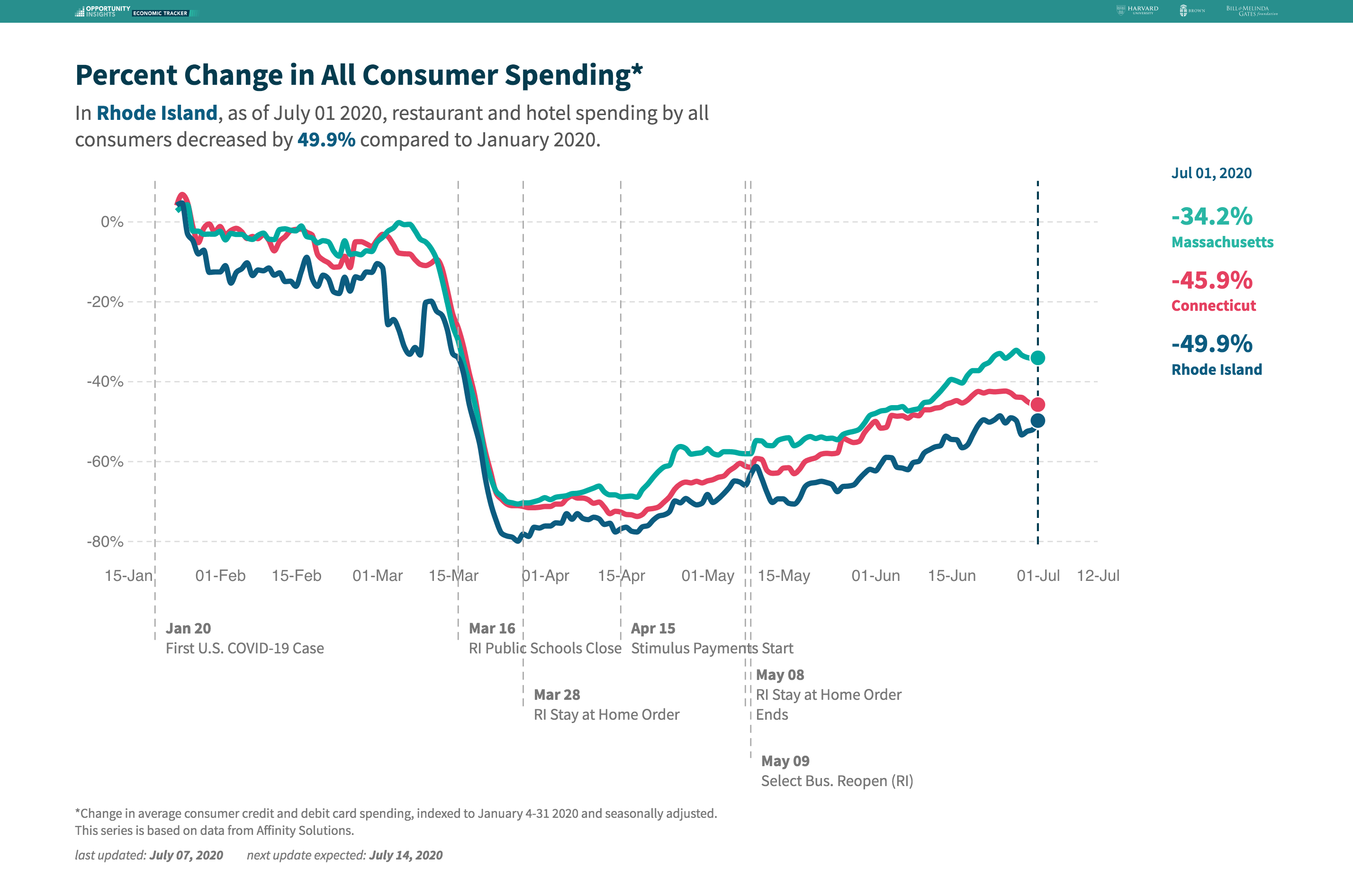The data was developed by Opportunity Insights, a collaborative effort by MIT and Harvard and Brown University researchers which looks at the impact of the coronavirus on multiple business sectors.