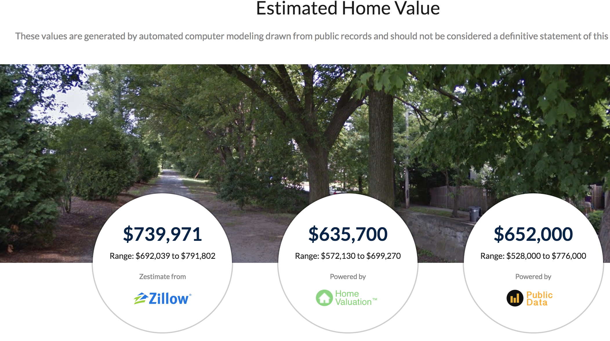 The three tools are from well-known data analysis firms Public Data, Home Valuation, and Zillow.
