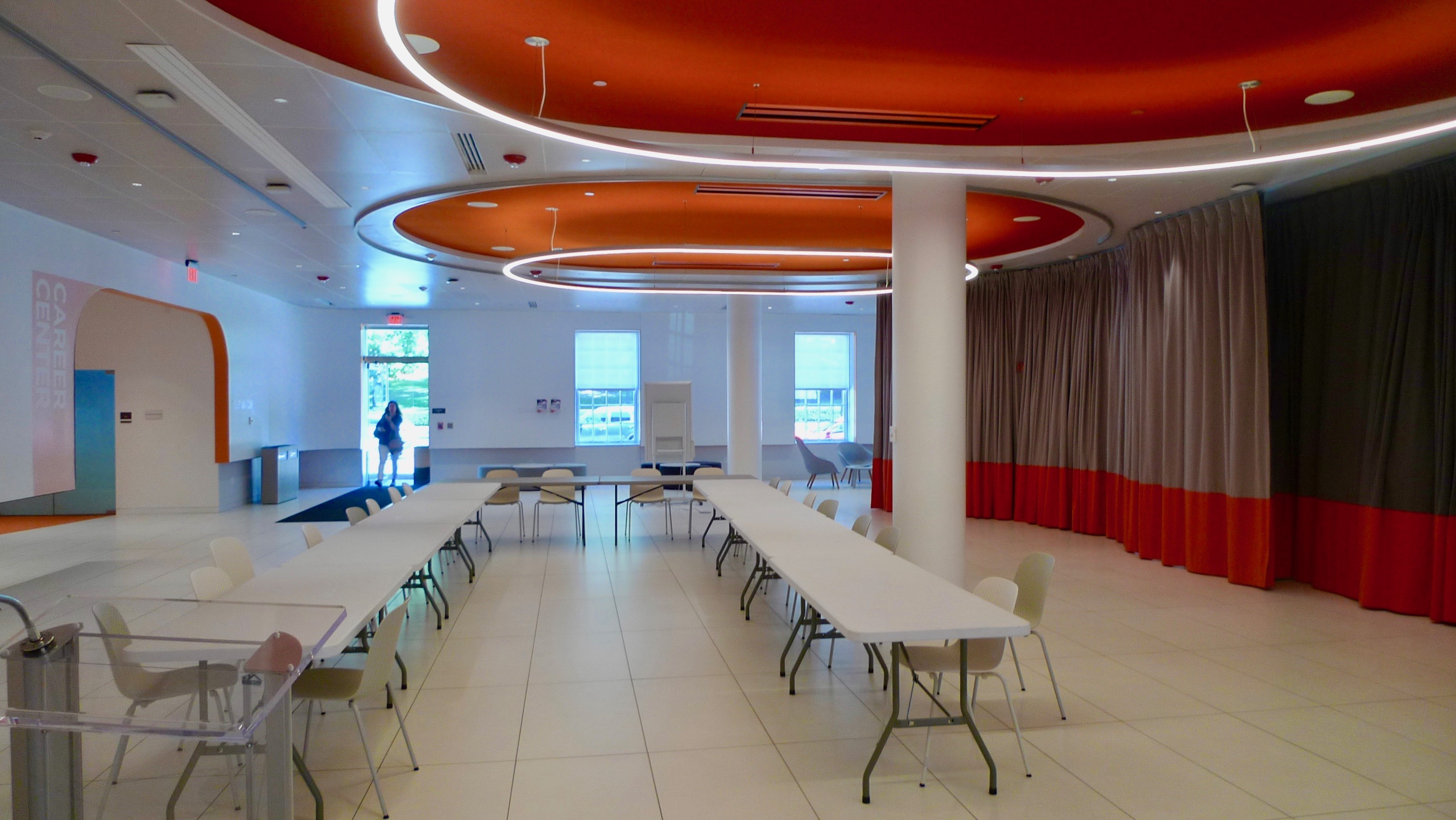 This public space is less than uplifting. Flexible, as in open, and mostly used by Admissions, the space is characterless.