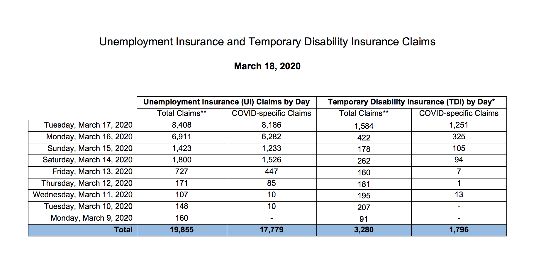 Nearly 20,000 people have filed for unemployment benefits or TDI.