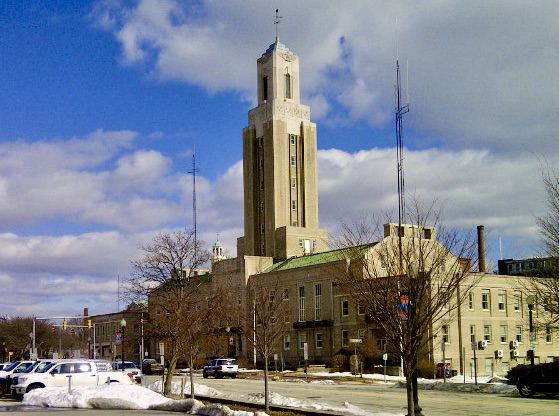 The jewel of Pawtucket civic buildings is the library, a turn-of-the-20th-century landmark by the Boston firm of Cram, Goodhue & Ferguson, who soon thereafter won the competition for a new campus at West Point. Like Wright, Ralph Adams Cram–perhaps the most famous architect America forgot–made the cover of Time magazine. He is best known for his Gothic churches and colleges, so the Pawtucket library is one of his rare Greek works. Beyond the Ionic columns, the library is composed of simple, blocky masses that do not rely on decoration to make a surprisingly clean, even modern, building for 1902.