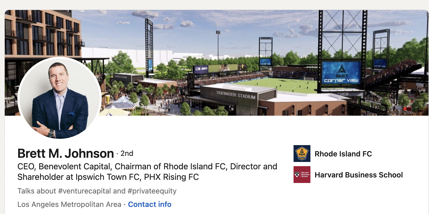 “I own six clubs around the world including a prominent club in England called Ipswich, and the development rights in Rhode Island. I own this team in Tuscon and a team Denmark,” said Brett Johnson on the podcast.