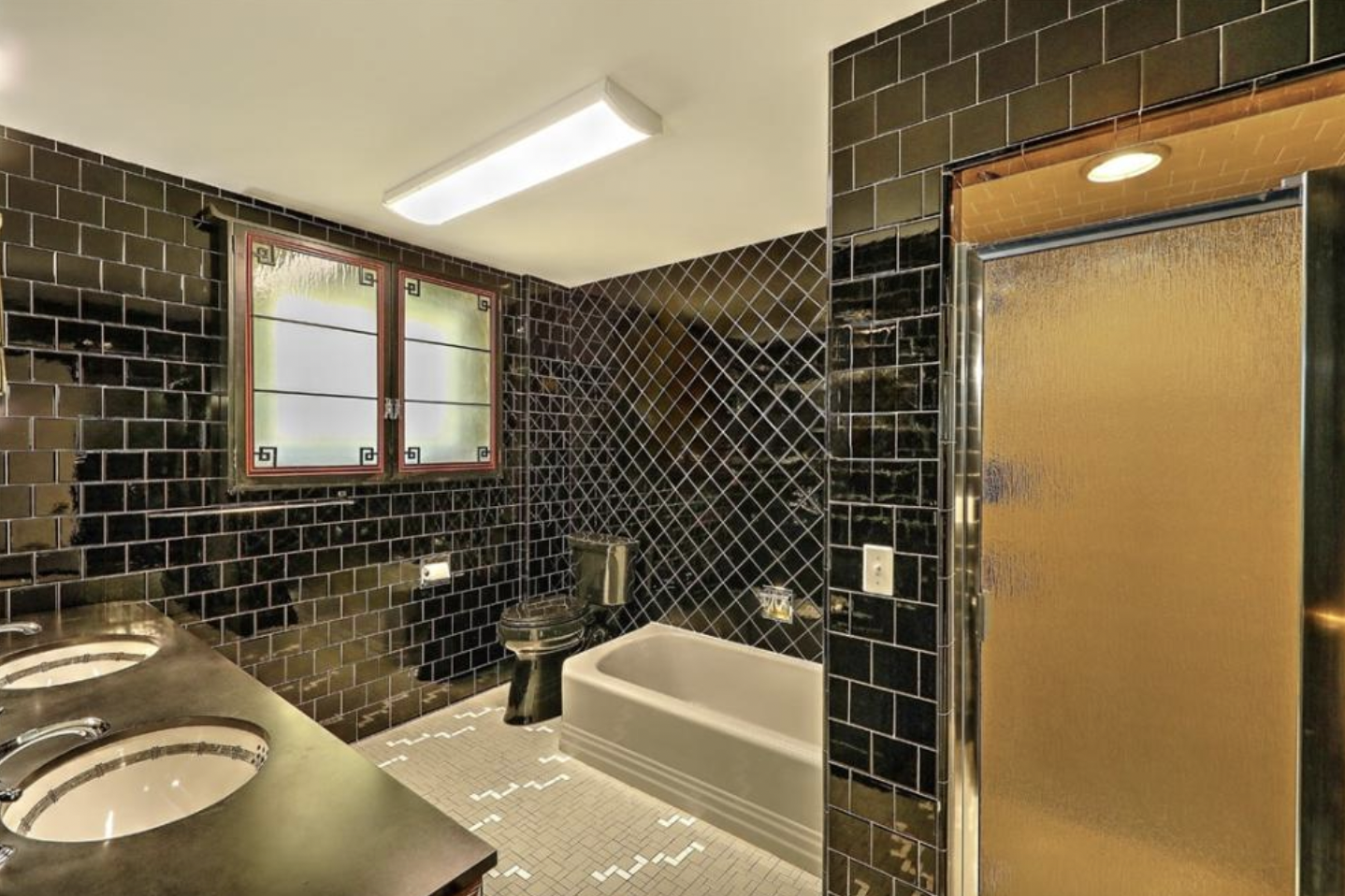 Featured in Architectural Digest in 1958, this stunning mid-century modern masterpiece showcases many design features popular in the period. The graceful, rounded entry way invites you into a salon with 15' ceilings. Floor to ceiling windows with carved wood panels allows light to stream in, casting artful shadows along the rich wood floors that flow throughout the space. To the left is a family room with a fireplace and custom cocktail bar. To the right, a vintage powder room.