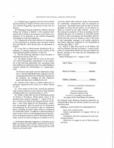 The final decision by the NLRB was rendered after RI PBS had appealed an August of 2018 decision by David Goldman NLRB, who found that RI PBS had violated multiple federal labor standards.