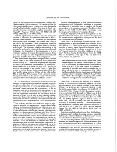 The NLRB found, "Here, there was no employee effort to remove the Union as representative. There was not even a decertification campaign for the employer to unlawfully assist or unlawfully instigate, because there simply was no employee effort to remove the Union. Here, the employer ferreted out employee dissatisfaction, through interrogation, found what it considered (wrongly) to be enough, and on that basis unilaterally withdrew recognition."