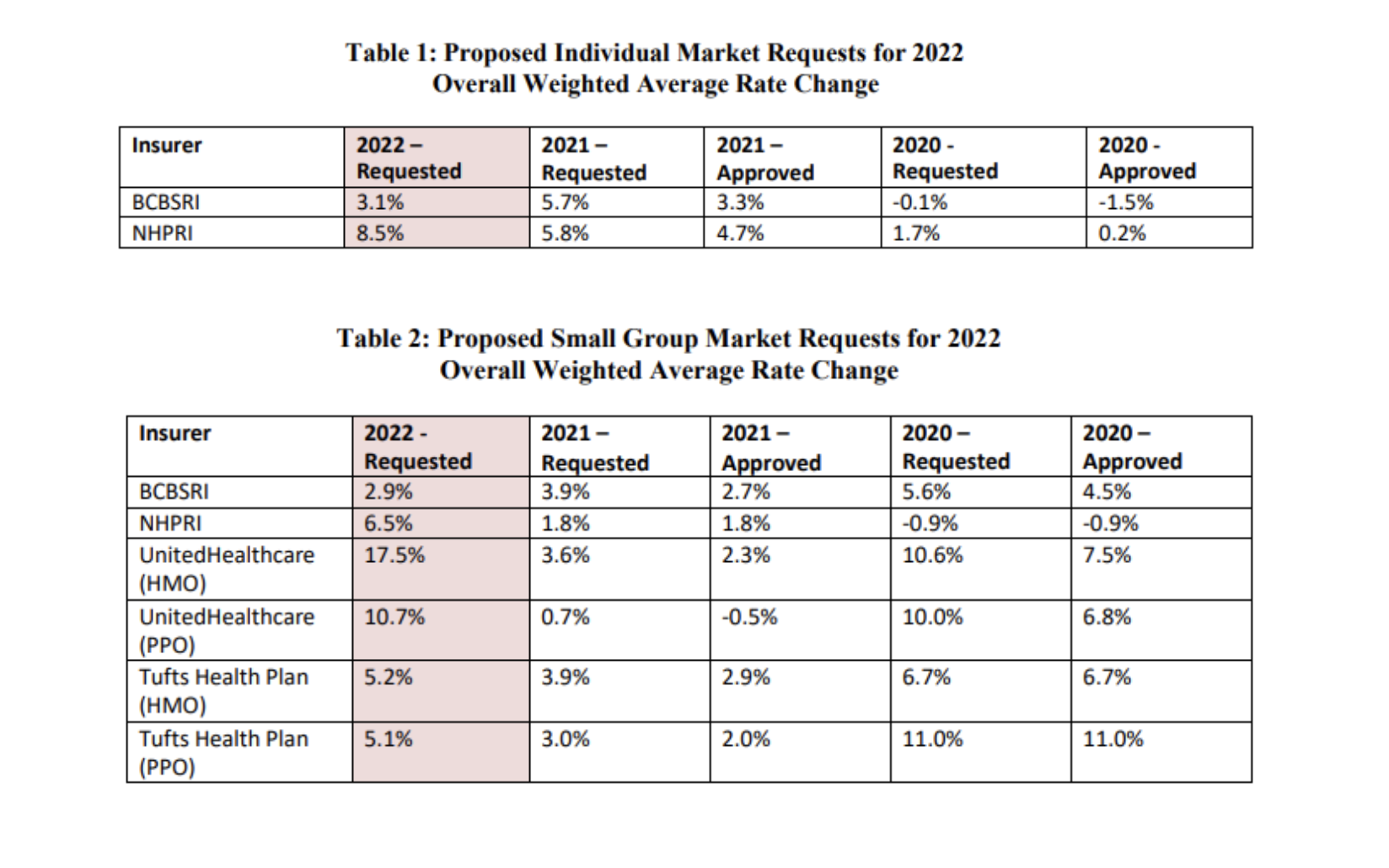 RI Health Insurance Carriers Request 2022 Rate Hikes
