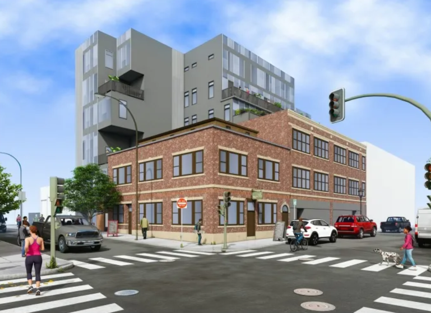 Monika Kraemer defended her design to the Downtown Design Review Committee, noting, "We don't want to add more visual clutter … we want our building to be very streamlined and minimize the amount of materials, that way our building looks very much different than the existing ones." (Translation: We really do not have the imagination to solve this awkward design problem.) 71-73 Richmond will, presumably have metal sheathing. While there should be no objection to minimalism done well, what we curiously have here is an entire side wall that is blank, yet the opposite side features a glass curtain wall. A wall of glass could be quite stunning, but the renderings suggests that there will be different colored panes; the architect said that is just an affectation of the renderer, as the glass will be a single tint.