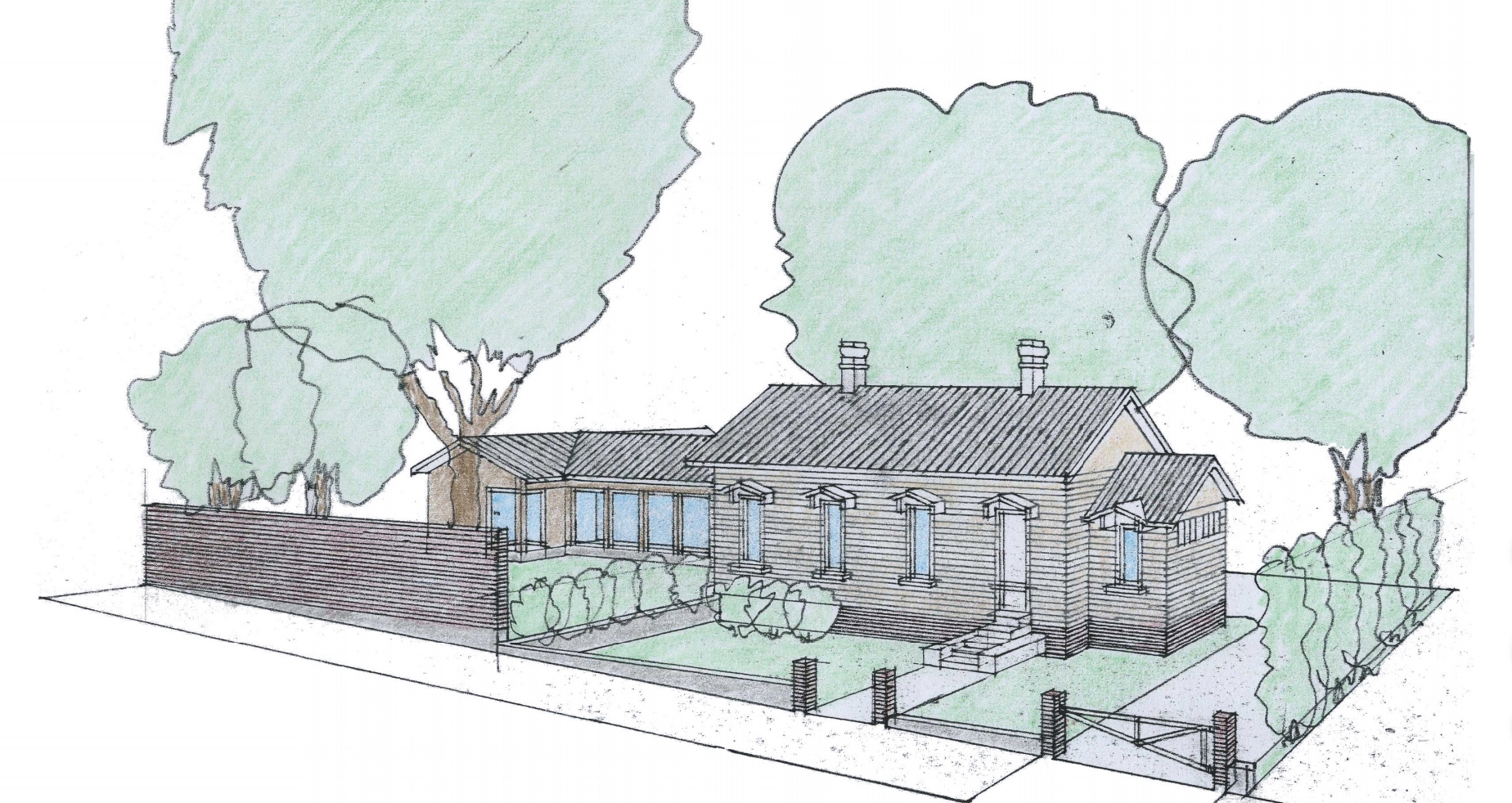 St Florian's plan for the cottage is to raze the thoroughly non-historic four-car garage, move the cottage closer to the street, and add a wing that would not be visible from Williams Street. St Florian rightly believes that the addition should be modestly contemporary, just as the cottage speaks of its 19th-century heritage.