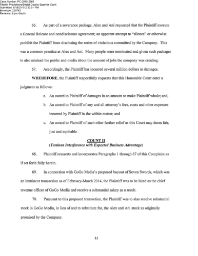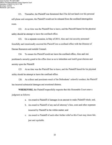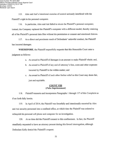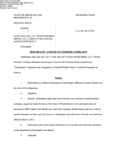 GET THE LATEST BREAKING NEWS HERE -- SIGN UP FOR GOLOCAL FREE DAILY EBLASTIn an unrelated case, Alex and Ani’s former Acting Chief Operating Officer, David Medeiros, claims that Alex and Ani's Rafaelian and the company were guilty of a range of indiscretions including shareholder fraud, and anti-military rants.