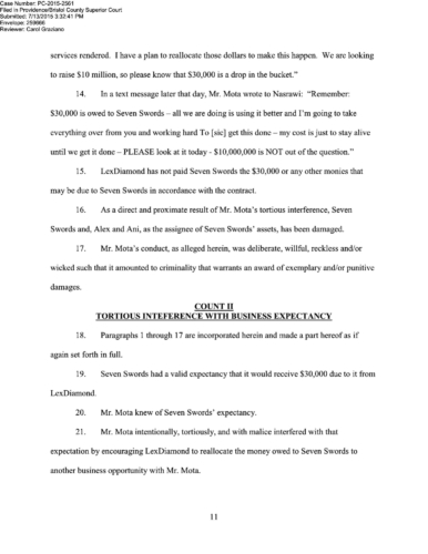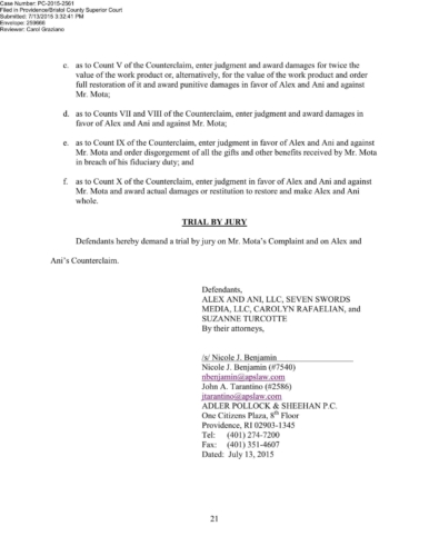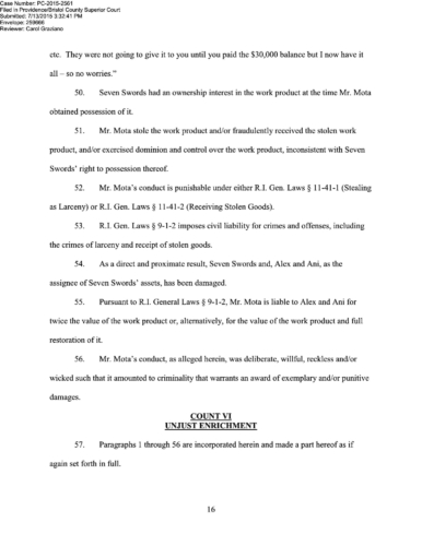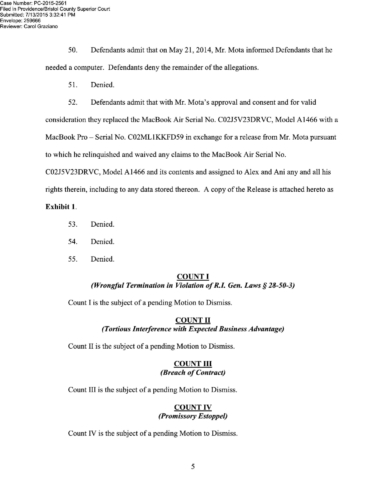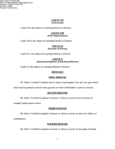 SEE SLIDESHOW BELOW -- READ THE MOTA COMPLAINTS AND COUNTER CLAIMS BELOW