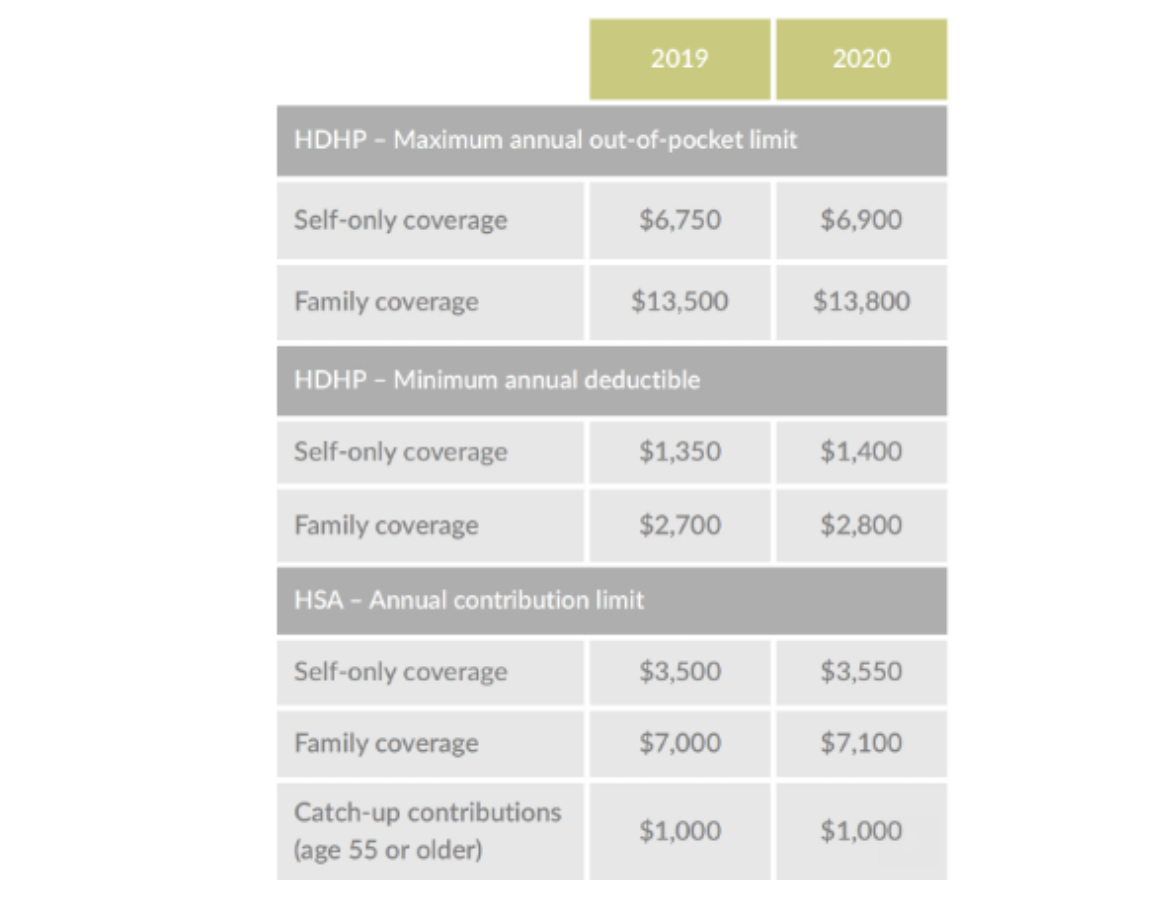 The IRS has made cost-of-living adjustments to the applicable dollar limits for HSAs and HDHPs for 2020: