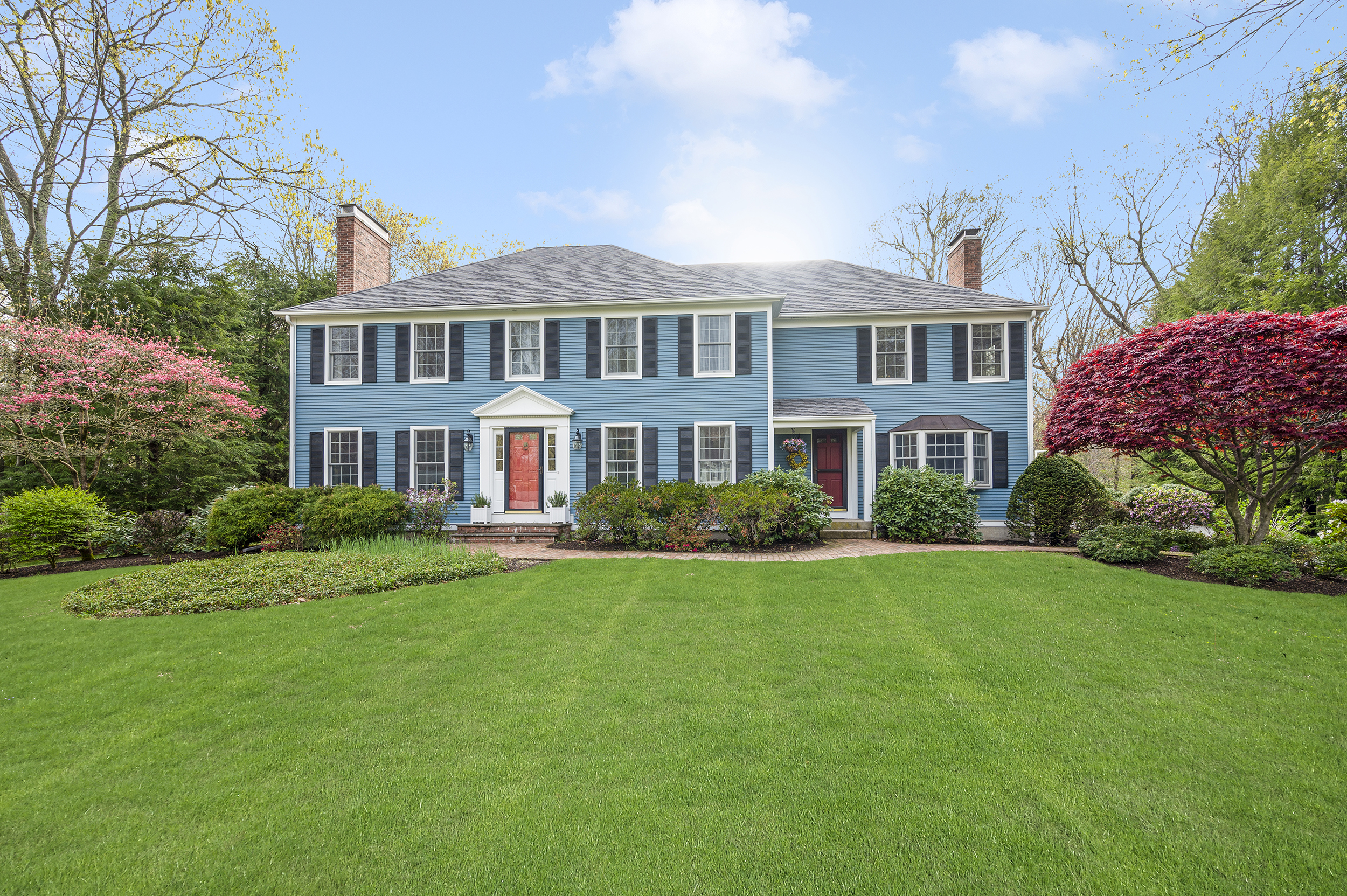 This stately hip-roof Moorehead colonial home is located on a quiet cul-de-sac, set back on 1.45 acres in desirable Signal Ridge. This five-bedroom, three and one half bath home offers over 5,000 square feet of luxury living space. The renovated eat-in kitchen with granite countertops and stainless-steel appliances opens to the great room with one of three fireplaces. Off the kitchen is the light and bright heated sunroom. The separate dining room and living room with a second fireplace offer plenty of space to entertain. Library or private office with built-in bookcases and French doors complete the first floor. Take one of two staircases to the second floor which includes your master suite with third fireplace, walk-in closet, and a completely renovated master bath with soaking tub and heated floors. Four additional large bedrooms, two updated double vanity bathrooms, and laundry are located on the second floor. Gleaming hardwood floors throughout. 1,350 additional finished square feet complete the lower level. Privately set on an acre plus this home seamlessly blends inside and outside living with a fabulous stone patio and fire pit. This home provides elegant and comfortable living at its finest.