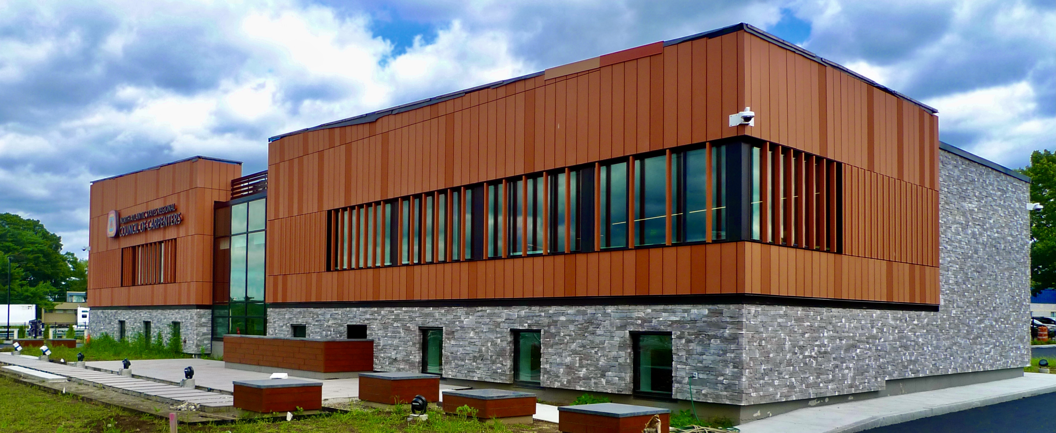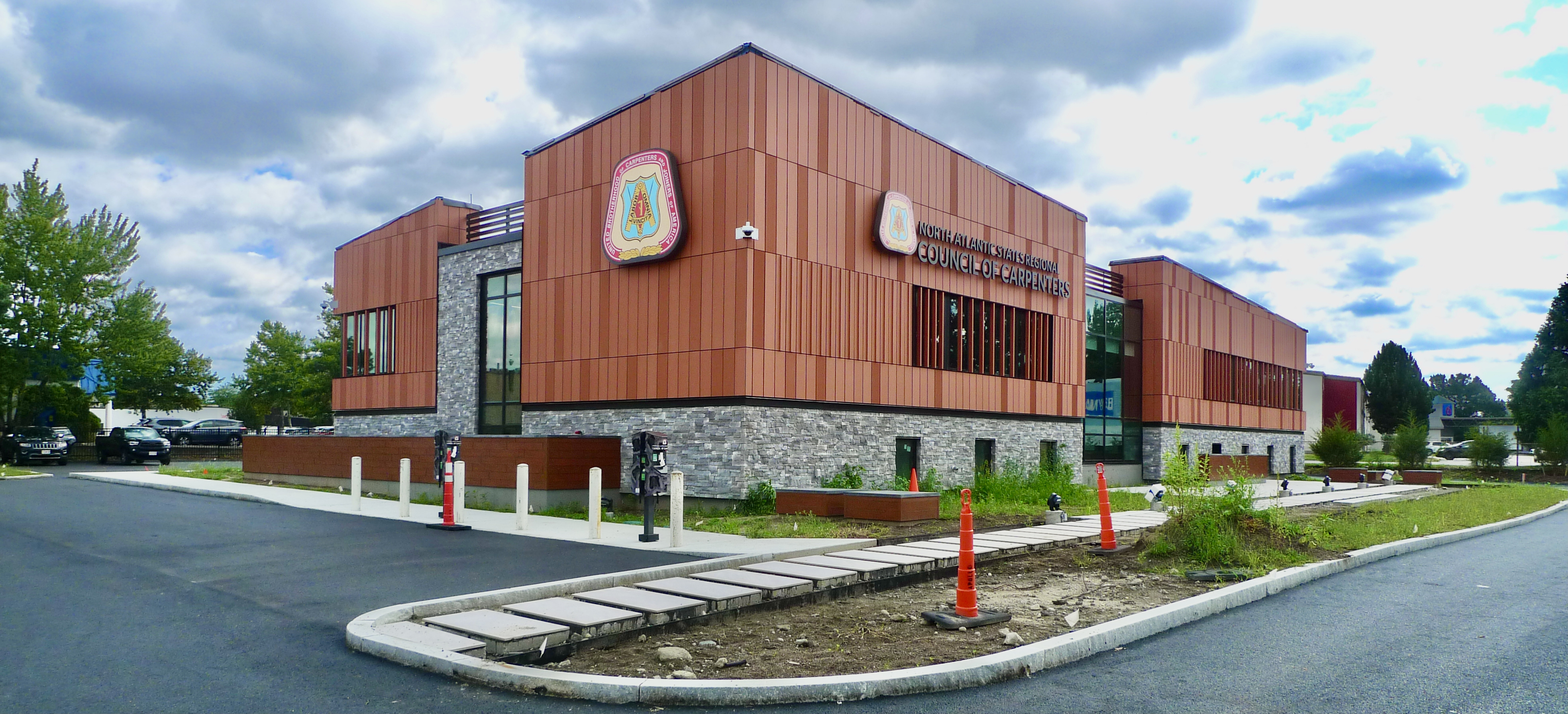 Unions are a big deal in Rhode Island, but their presence rarely reflects a focus on architecture. Yet, the North Atlantic States Regional Council of Carpenters Local Union 330 has a handsome new headquarters overlooking Interstate 95 in Warwick that deserves recognition. With the striking exception of the starkly modern Viessmann building (that looks like it belongs in Zurich or Rotterdam), most of the businesses lining the route into our city from the south are nothing to write home about.