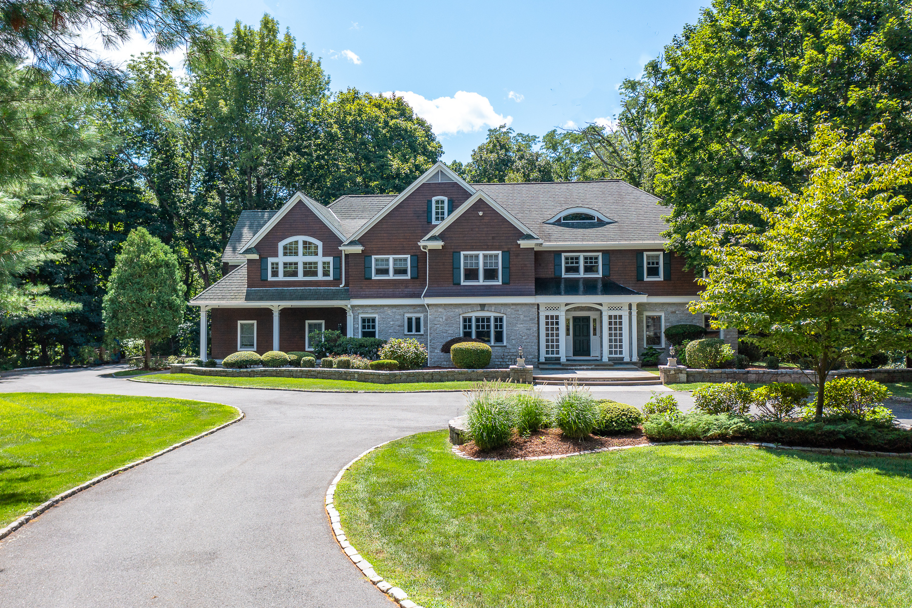 Grand Country Manor Estate is sited on 3.39 acres on Twin Pond, privately tucked away in the exclusive Cedar Rock Meadows neighborhood. The impressive architect-designed residence is a combination of classic shingle style and stone, with bluestone patios, walkways and stone walls, surrounded by mature and professional landscape. An impressive two-story foyer welcomes you to a home suited for entertaining family and guests on an intimate or large scale. The main floor offers both formal living and dining rooms with exquisite woodwork finishes and moldings, hardwood flooring, two fireplaces, wet bars, and a year-round sunroom with double French doors. A true gourmet kitchen has been extended to satisfy the most discerning cooks with generous workspaces and high-end appliances and lighting. Two lavettes, a laundry area and mudroom with a secondary staircase complete the first level. Upstairs are five beautifully scaled ensuite bedrooms with many custom built-ins, including a primary suite enhanced with a stone fireplace, two walk-in closets and a spa-style bath. The top floor adds an elevated level of recreation with a theater and dormered alcoves for sporting, game tables and music with an additional versatile guest suite, currently used as an exercise room. The lower level provides an abundance of storage space with interior/exterior access. Ideally located for convenient access to Main Street restaurants/shops, marinas, TF Green Airport/Commuter train and highway access.