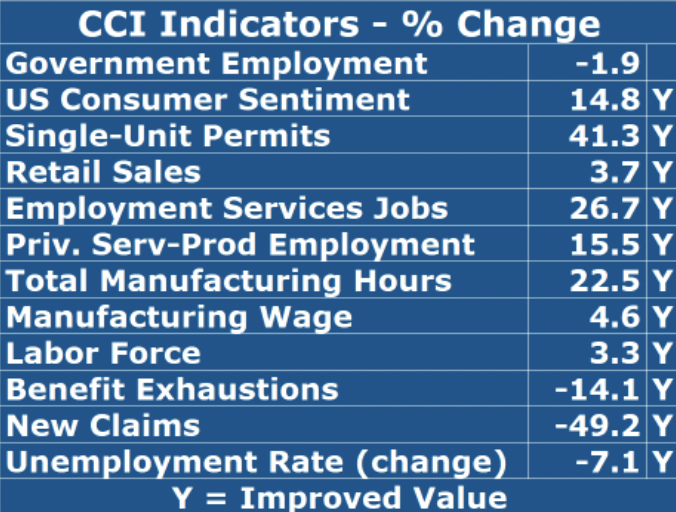 Not surprisingly, these two expansion levels occurred relative to year-earlier CCI levels of 8, which translated into extremely easy “comps.” For a host of the May CCI indicators, they were compared to prior declines of 20 percent or more. As I noted last month, our state’s economy had fallen so far a year ago, it was virtually impossible for it to decline much further, which is how recoveries typically start. In spite of this, a number of indicators have moved well beyond the depths they reached last year, which by itself is encouraging. But as these aggregate values (hopefully) continue to improve in the coming months, we will not be returning to “normal,” as it existed prior to the pandemic.
