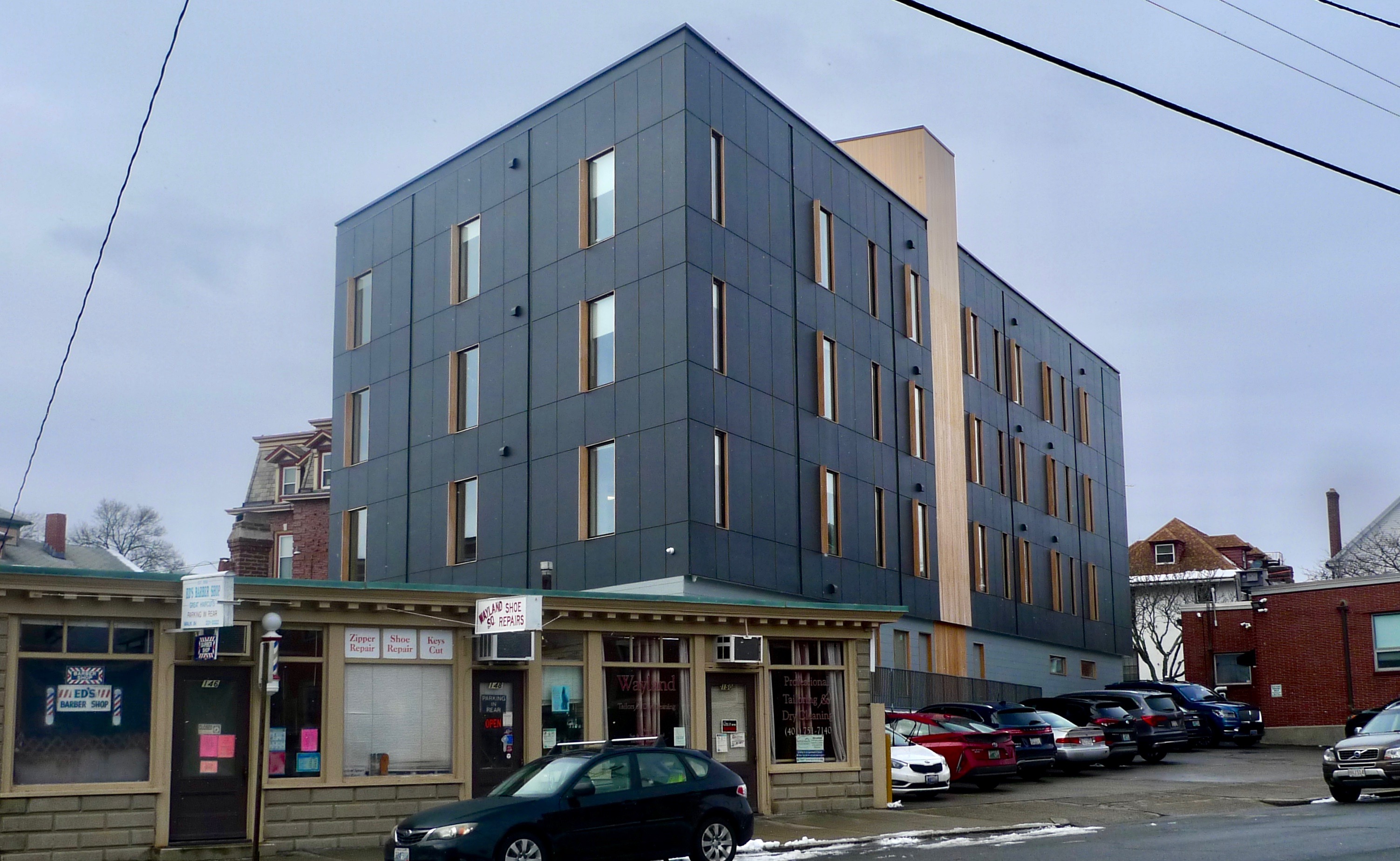 Kyle Seyboth, the developer, and his architect Ed Wojcik, have so far offered another ubiquibox, an undistinguished fiberglass cement-wrapped piece of rentable space. Seyboth told some concerned neighbors that he is “really cognizant of modern architecture” in the neighborhood. He added that he tried to “match what has already been built in the area.” Seyboth’s model seems to be the recent speculative 3 and 4-story apartments, such as Station Row or the box at the corner of Waterman and Hope Streets.