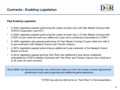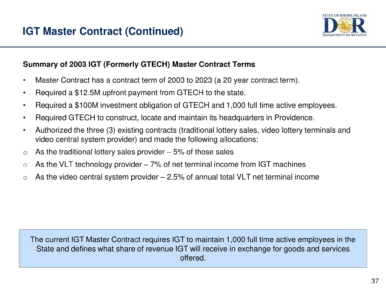 The lottery is the 3rd largest source of state revenue.The hearings have begun to review the proposed extension of IGT's 20-year contract with the State of Rhode Island.