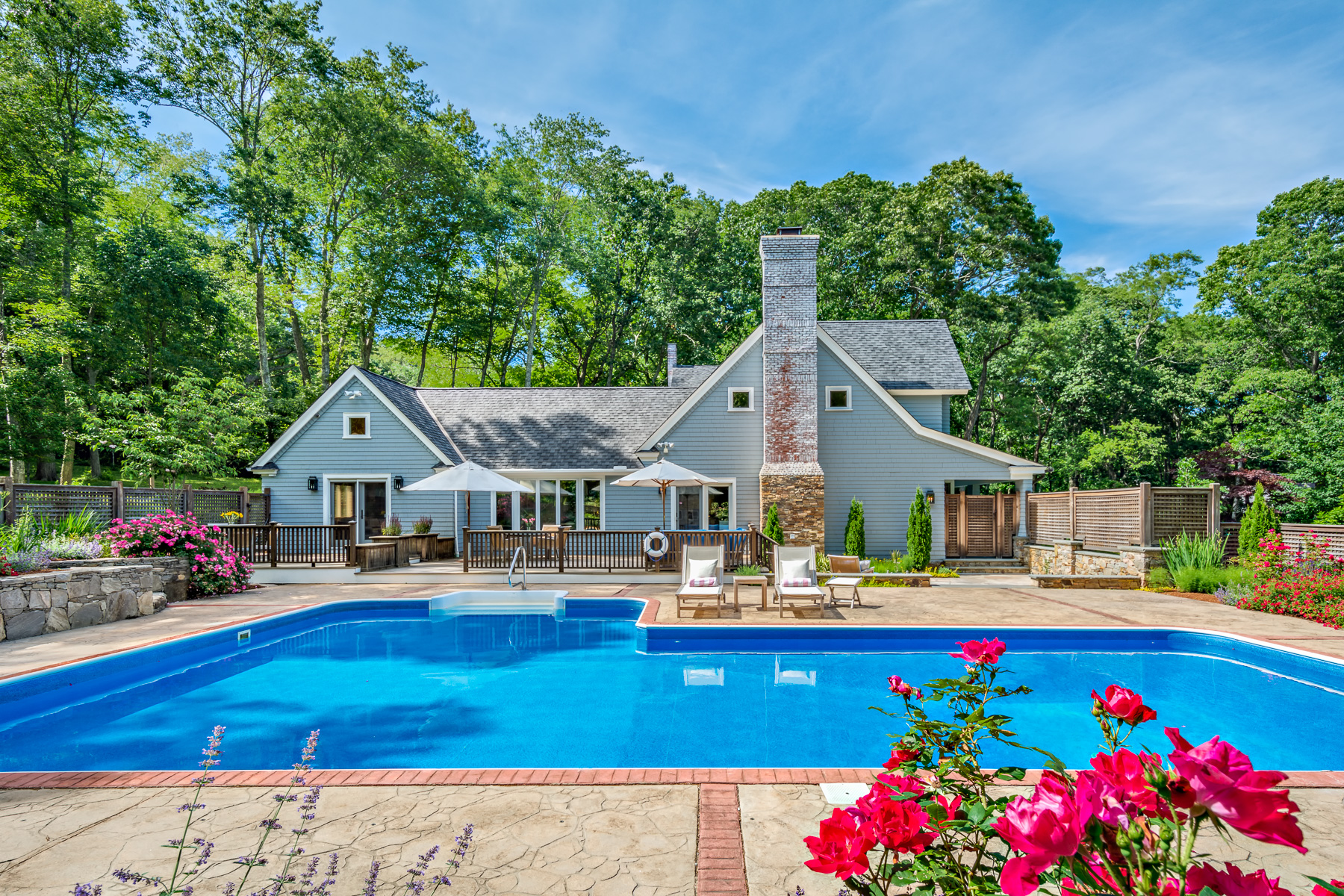 This flawless contemporary balances both a fresh and modern approach alongside classic & traditional vibes! This resort like property offers endless opportunities for family fun in every season. The sparkling blue, saltwater pool is anchored by beautiful stone patio's and an abundance of deck space making it the perfect spot for hosting all your summer gatherings! There is also a full-sized tennis court perfectly perched under the shade of beautiful trees along the backside of the property. These magnificent grounds also incorporate a large tranquil, reflecting pond that even freezes in the winter making the perfect spot for ice skating or even a game of ice hockey!