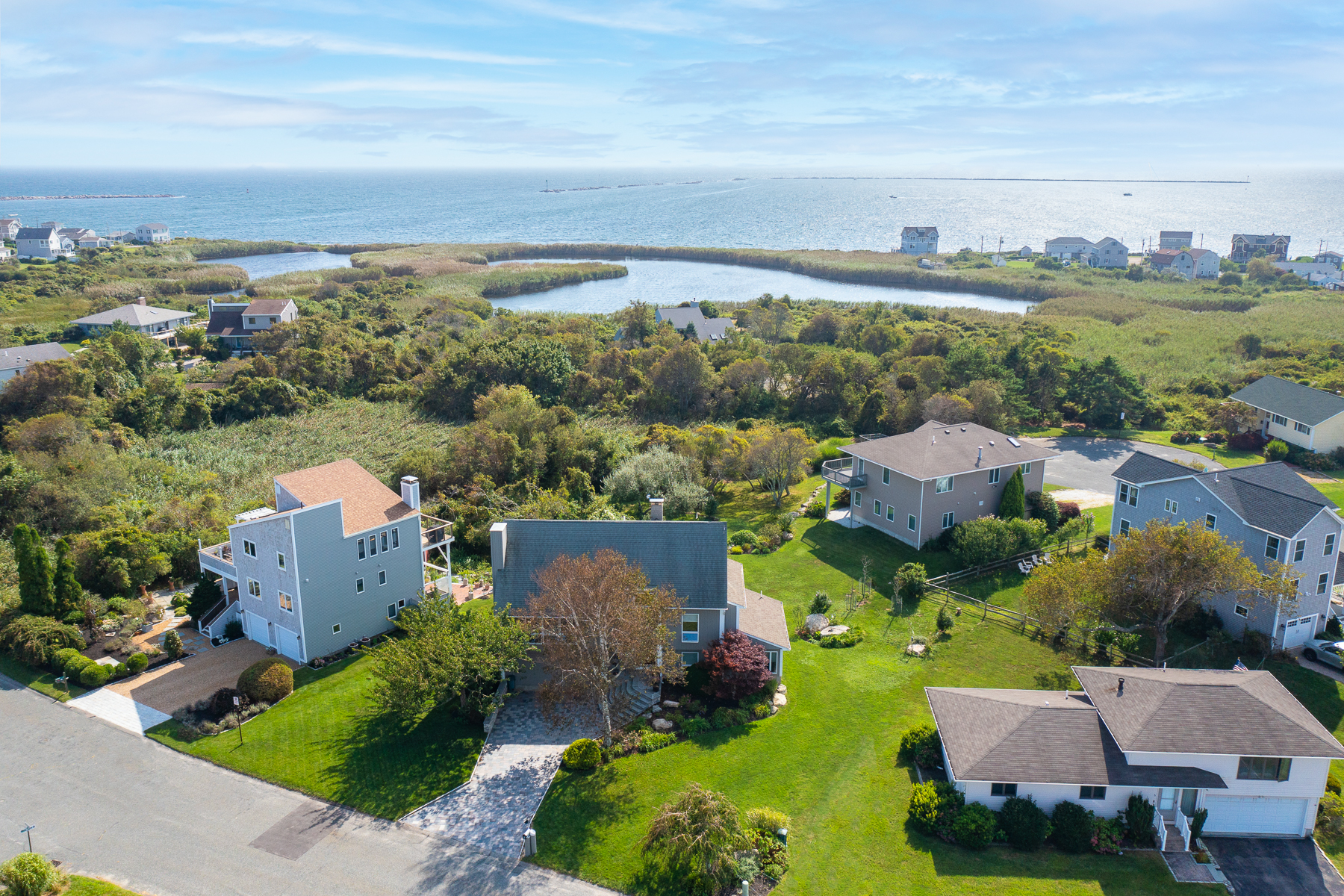 This stunning contemporary in the village at Point Judith defines your next coastal lifestyle! With sweeping views of Point Judith Lighthouse and the harbor of refuge. Offering 4 plus bedrooms and 3 full bathrooms, & a custom cherry kitchen with granite and stainless steel appliances, enjoy cathedral ceilings featuring a stone gas fireplace. This flowing floor plan allows for multilevel living for all to enjoy. The lower-level walkout has additional living areas for entertaining all seasons of the year. Walk out to your spacious 2 car garage. The property has 2 easements/ access points to the water. One on the easterly side at the k-39 surf break and another access to the west near Roger Wheeler State Beach. Wake up to the sounds of the waves coming in over the Point Judith lighthouse. Town water and sewer.