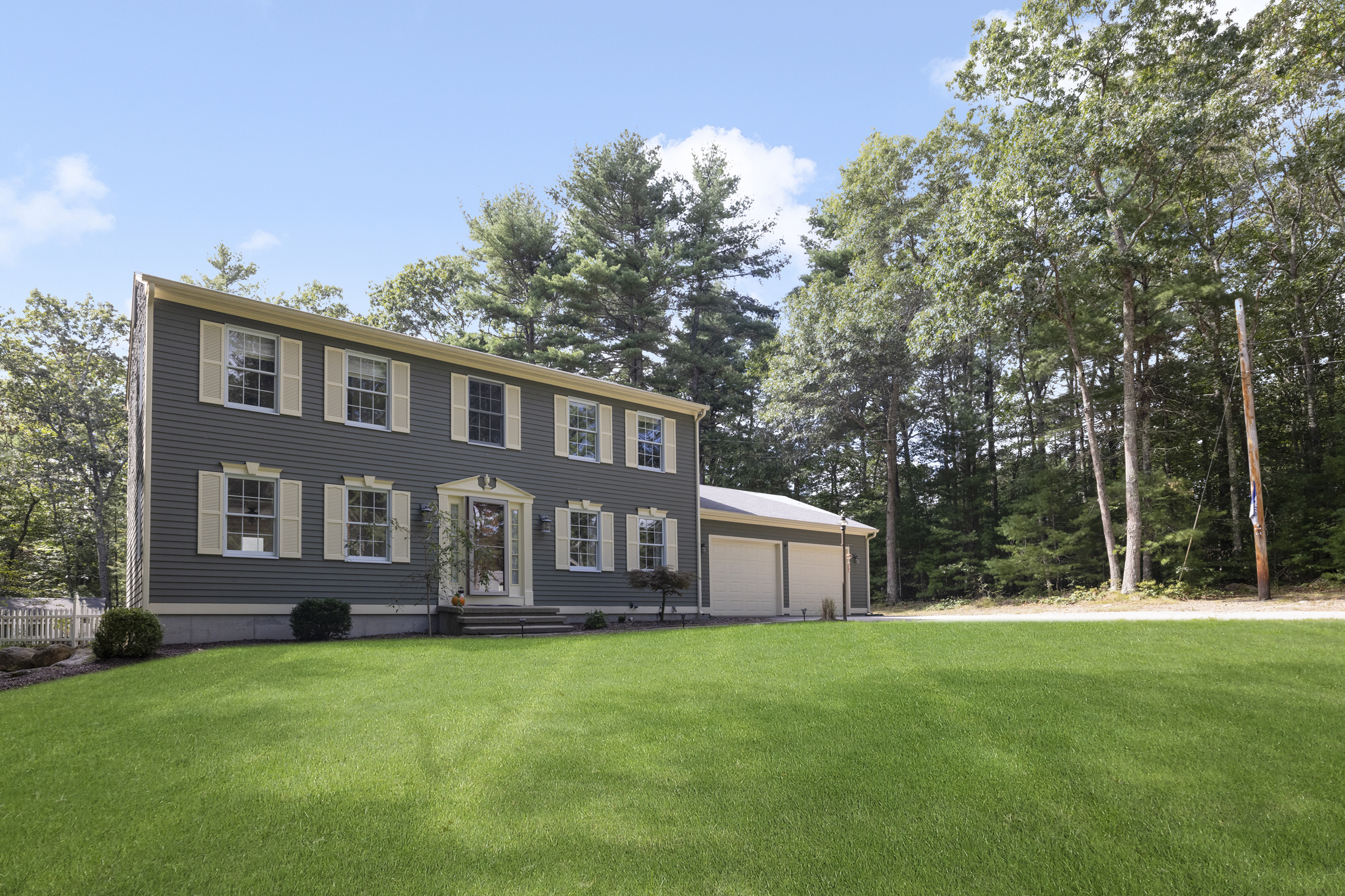 Comfort, privacy, and more await you and your family in this impeccably well-maintained home. A paved driveway leads to the Colonial’s heated 2-car garage. Upon entering the house, you’ll be greeted by the gleaming hardwood floors that run throughout the entire home. The first level hosts a spacious family room with French doors opening to the deck with a gazebo and a vast backyard. The open floor plan flows into an eat-in kitchen with Corian countertops and stainless-steel appliances. A well-sized dining room and a laundry room with a half bath complete the first floor. The primary bedroom on the second level features a cathedral ceiling, an en-suite bathroom with double vanity and a walk-in closet – your own private oasis. On the second floor you’ll also find two big bedrooms with closets and a full bathroom with tub. A partially finished basement has a fantastic custom-built bar and prime space for relaxing and entertaining. The backyard also has a large shed with electricity, perfect for a workbench and additional storage. Set back from the street, the home sits on over 2 quiet acres of land, but also allows for quick and easy access to I-95.