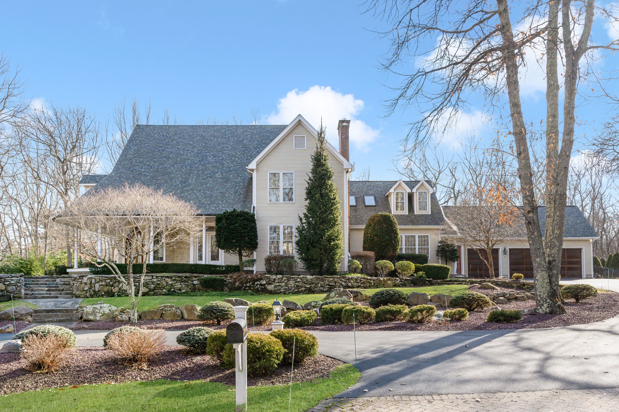 Welcome to 2 Tipping Rock Drive, an impeccably maintained East Greenwich residence situated on over three acres. This property features a Pebble Tec heated gunite pool, a new six-year roof with a 50-year warranty, an updated Navien gas heating system, and Central A/C. Architectural finesse graces every corner, with French doors opening to the mahogany wrap-around porch, a formal dining room leading to a stone patio, and a sunlit kitchen with granite, a Sub Zero fridge, and a breakfast area overlooking lush landscapes. The family room boasts birchwood paneling, built-ins, and a gas fireplace, while the living room includes a wet bar perfect for entertaining. The primary suite offers cathedral ceilings, a gas fireplace, a renovated bath, ample closet space with built-ins and a home office. Two bedrooms and another full bath complete the second floor. The lower level features a rec room, a family room with a wet bar, a bedroom, a full bathroom, a cedar closet, and a gym with walkout access to the lower-level patio. Ample storage, a mudroom, and a three-car garage add convenience. With a new driveway, new well pump, irrigation system and whole house generator, this property epitomizes luxury living, minutes from East Greenwich amenities.