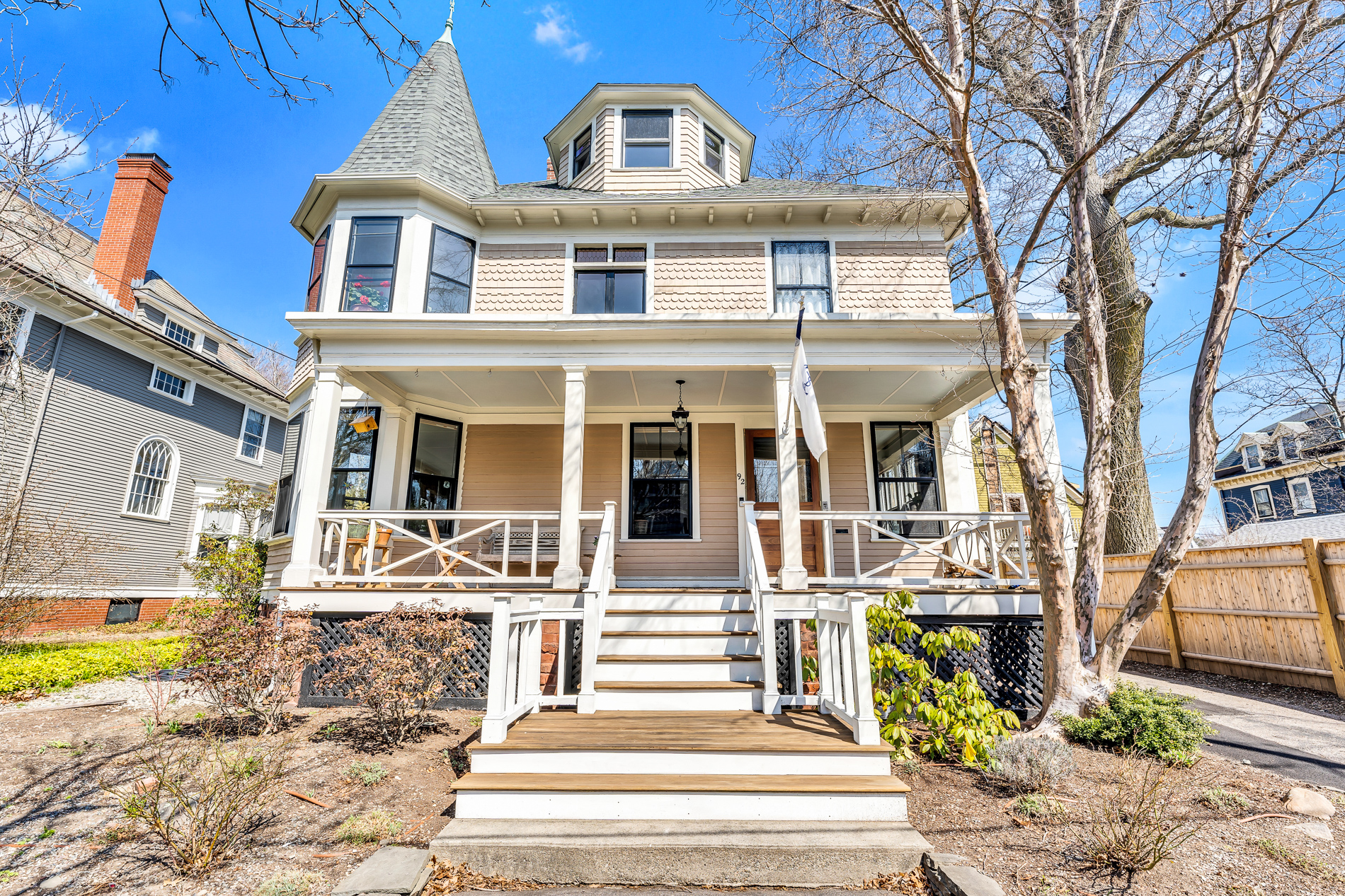 Located in Providence's prestigious College Hill neighborhood, 92 Keene Street offers modern amenities set amidst turn-of-the-century charm. This impressive display of Queen Anne-style architecture has been impeccably maintained while adding tasteful modern touches. The oversized front door welcomes you into the double parlor sitting area and recently restored grand staircase. Beautiful parquet floors, Herman Miller lighting, and finely detailed ceilings seamlessly unite classic and modern styles. The interior is freshly painted throughout, and fifteen windows have been carefully refurbished, retaining the authentic character of the home while offering abundant natural light. Four fireplaces add ambiance to the spacious living areas, and the kitchen and mudroom have been thoroughly renovated. There are four bedrooms - two on the second floor and two on the third floor - and three and a half bathrooms. The primary suite includes a sitting area, a generous bathroom and closet, and laundry. Included with an expansive backyard is a one-car garage, and an additional parking spot accessed by Clark Lane. To name a few of the home's updates, a new sprinkler system and main water line installed in 2022, and brand-new heating and cooling systems. Enjoy the ease of living in an impeccably updated home with Victorian-era charm and an excellent location.